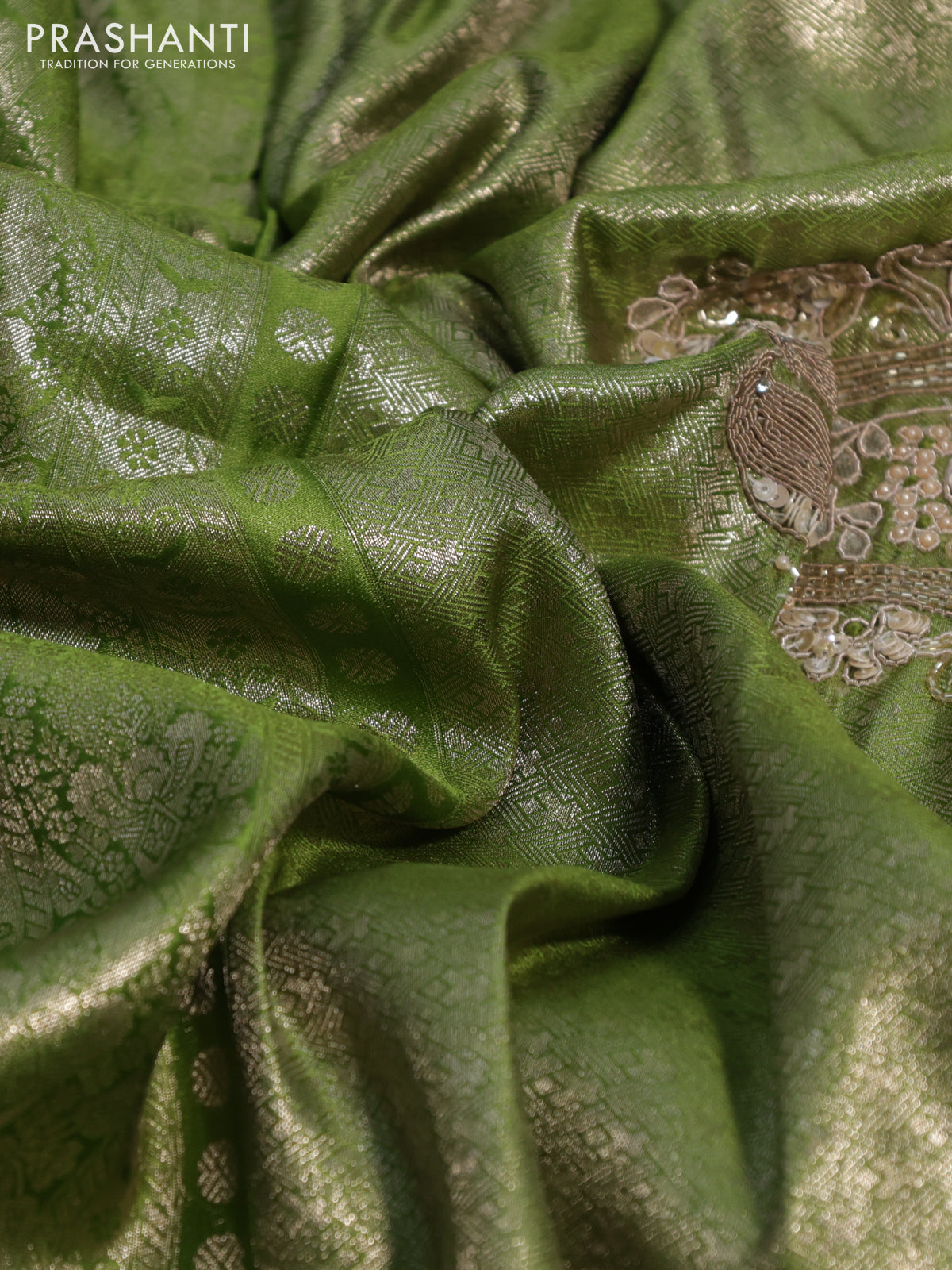 Banarasi silk saree light green with allover zari woven brocade weaves and embroidery sequin work border