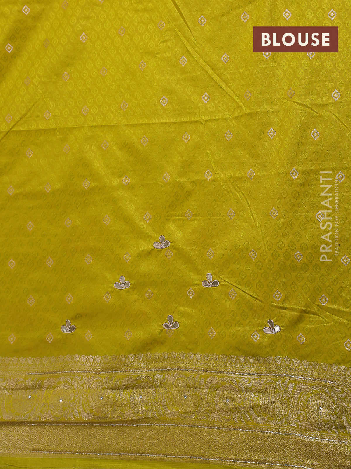 Banarasi silk saree lime yellow with allover zari woven brocade weaves and zaridosi gotapatti work border