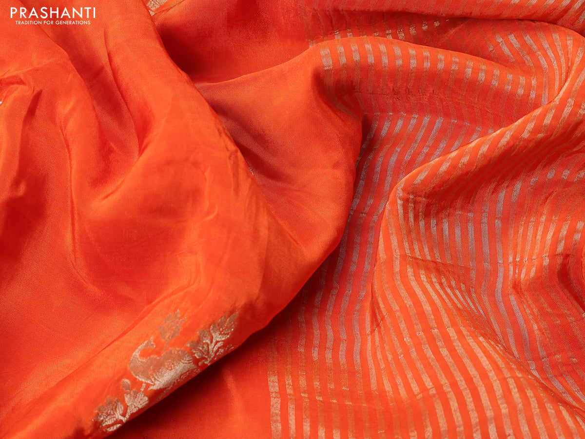Banarasi silk saree orange and pink with zari woven elephant buttas and zari woven border