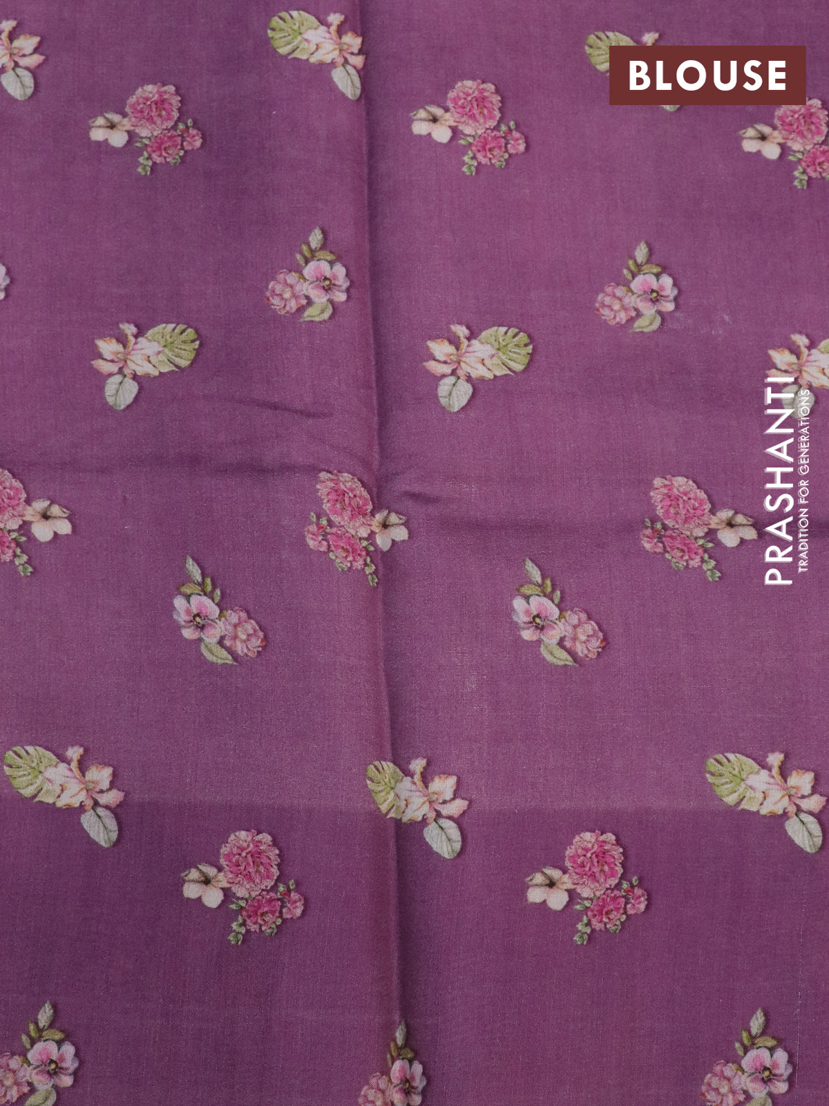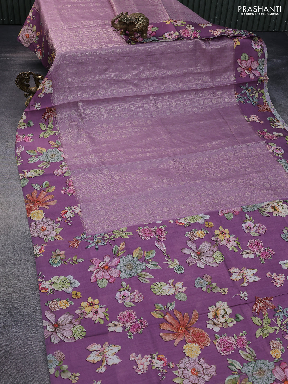 Banarasi silk saree pastel purple with allover zari woven brocade weaves and floral digital printed border
