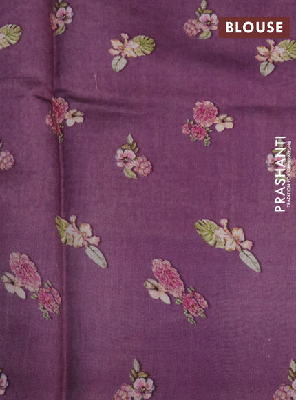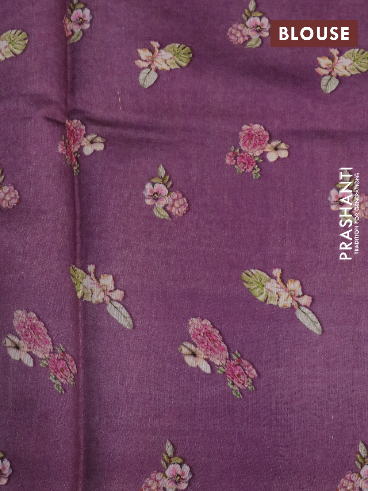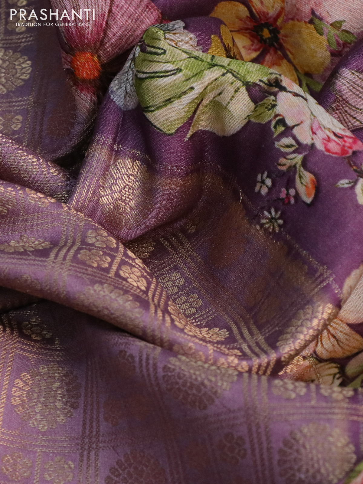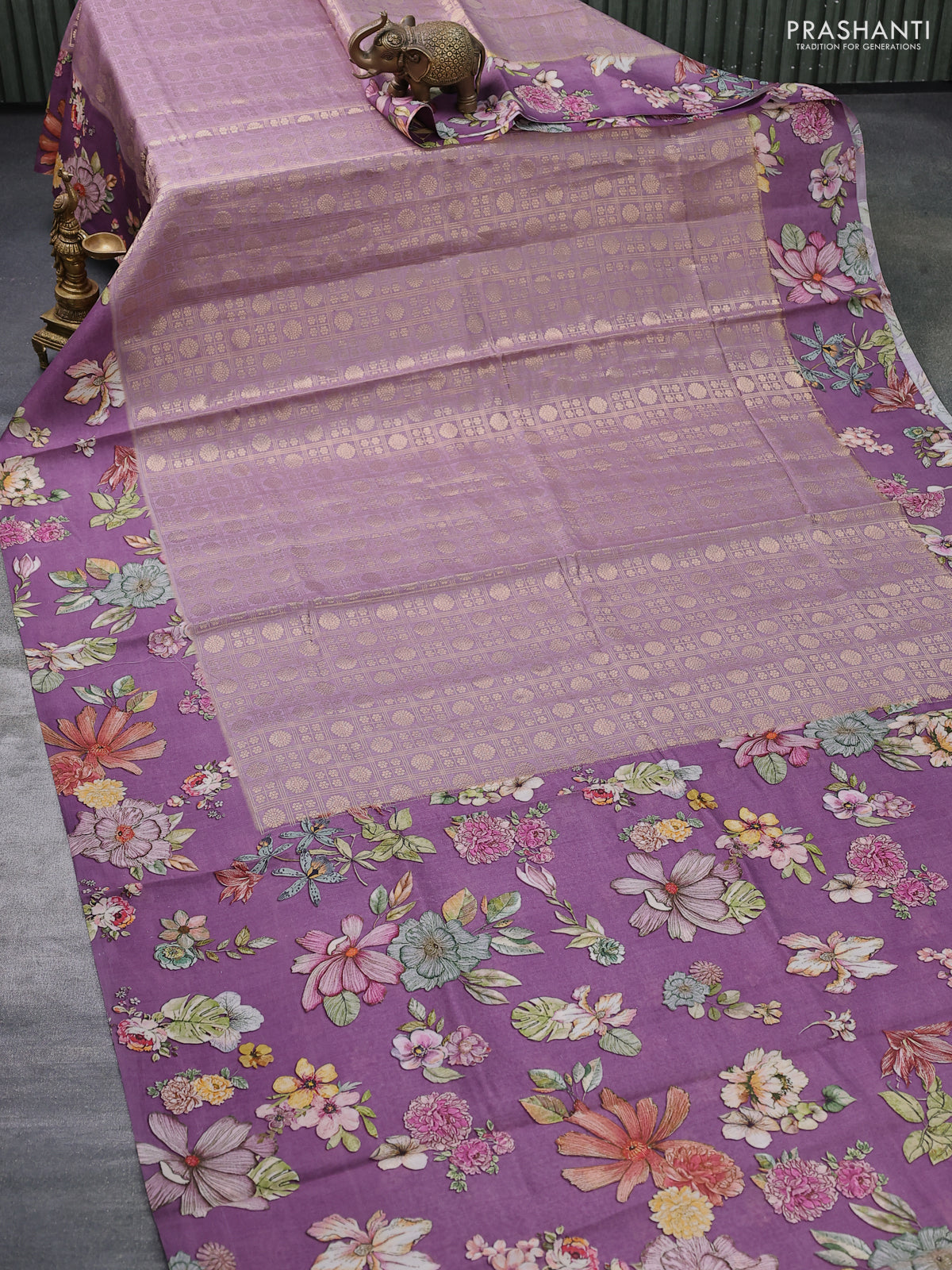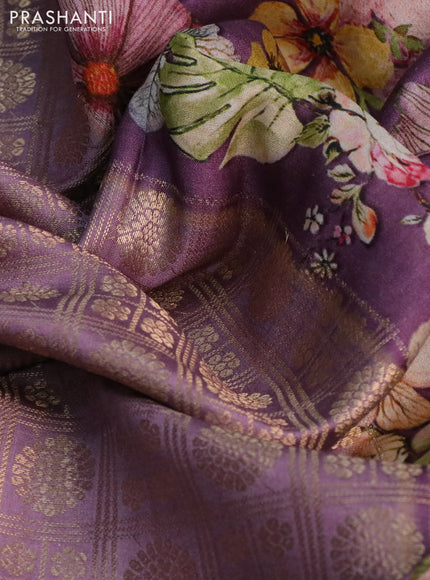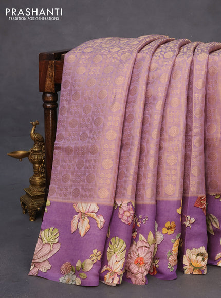 Banarasi silk saree pastel purple with allover zari woven brocade weaves and floral digital printed border