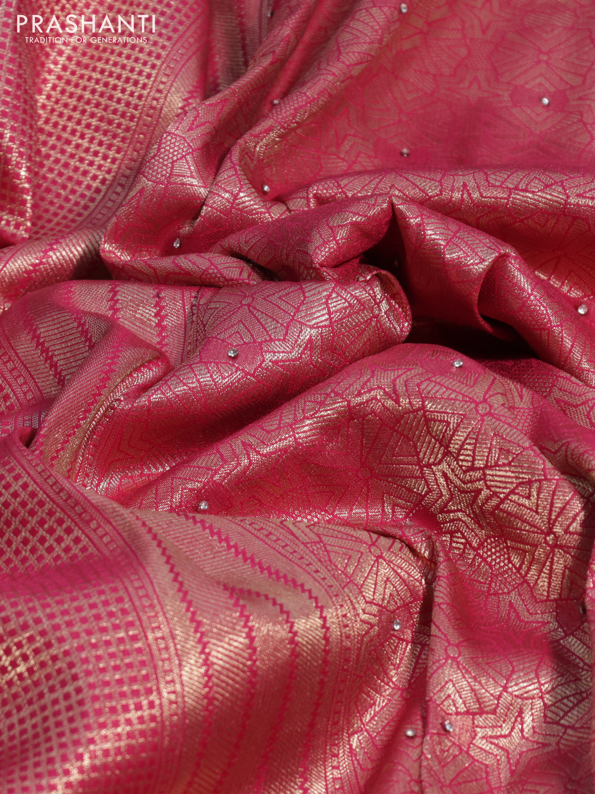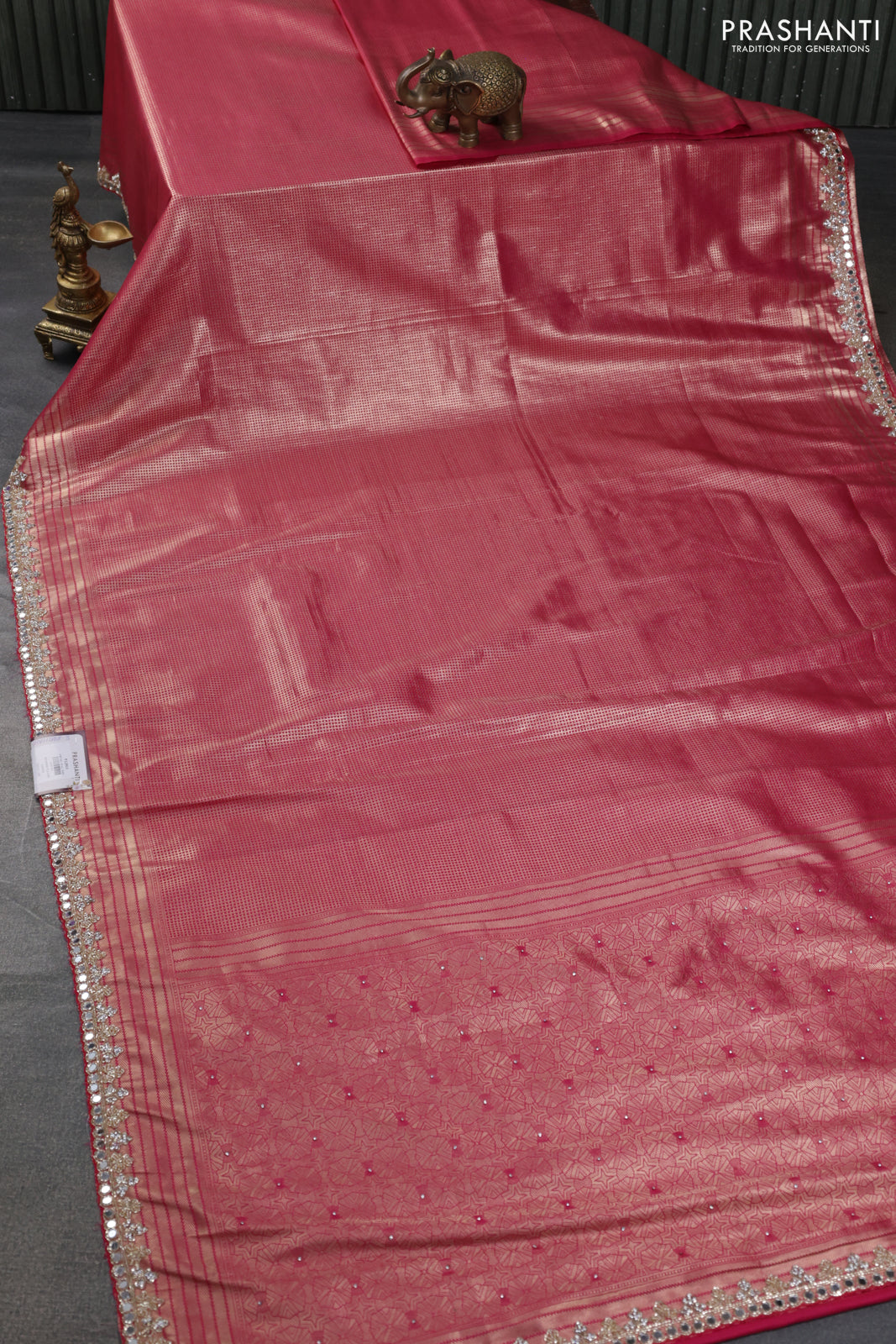 Banarasi silk saree pink with allover zari woven brocade weaves and embroidery mirror work border