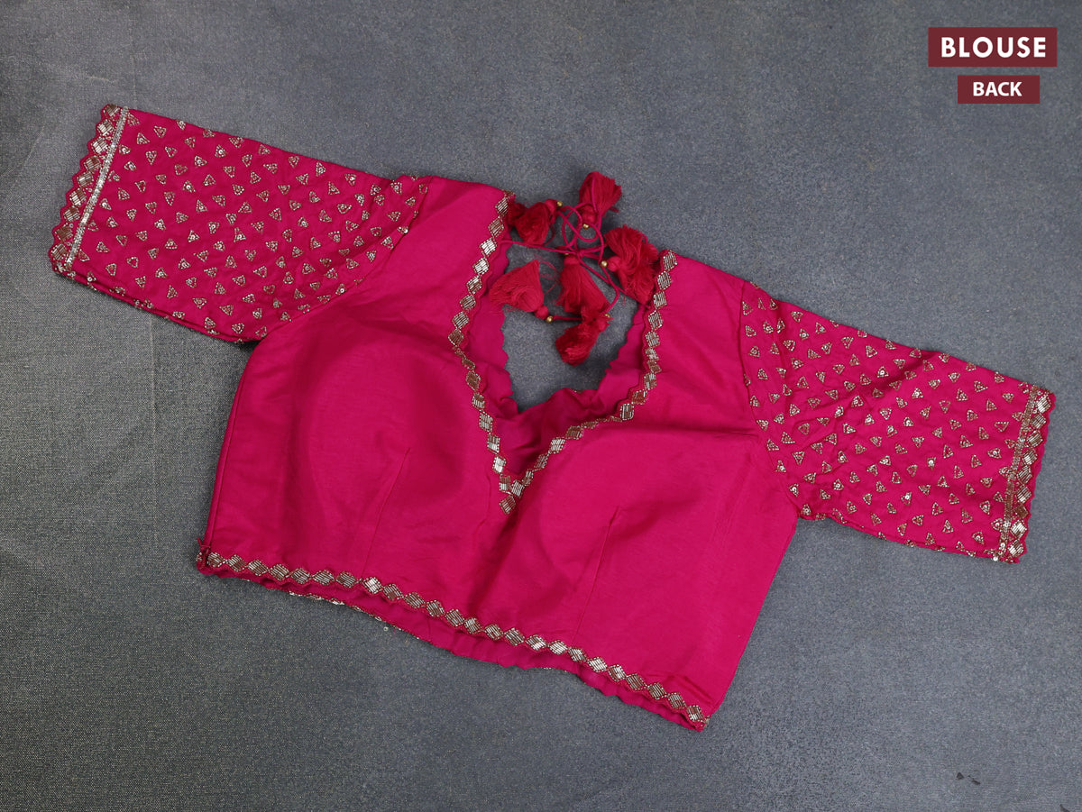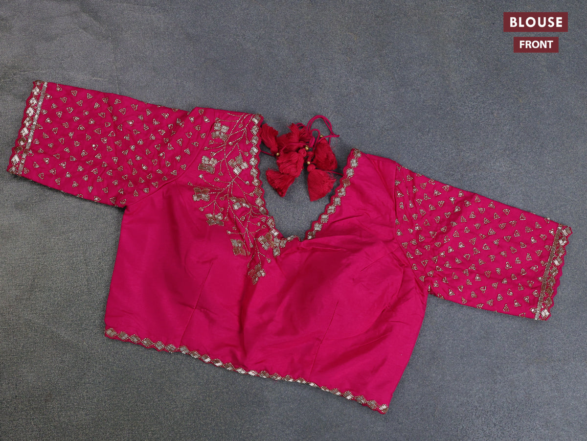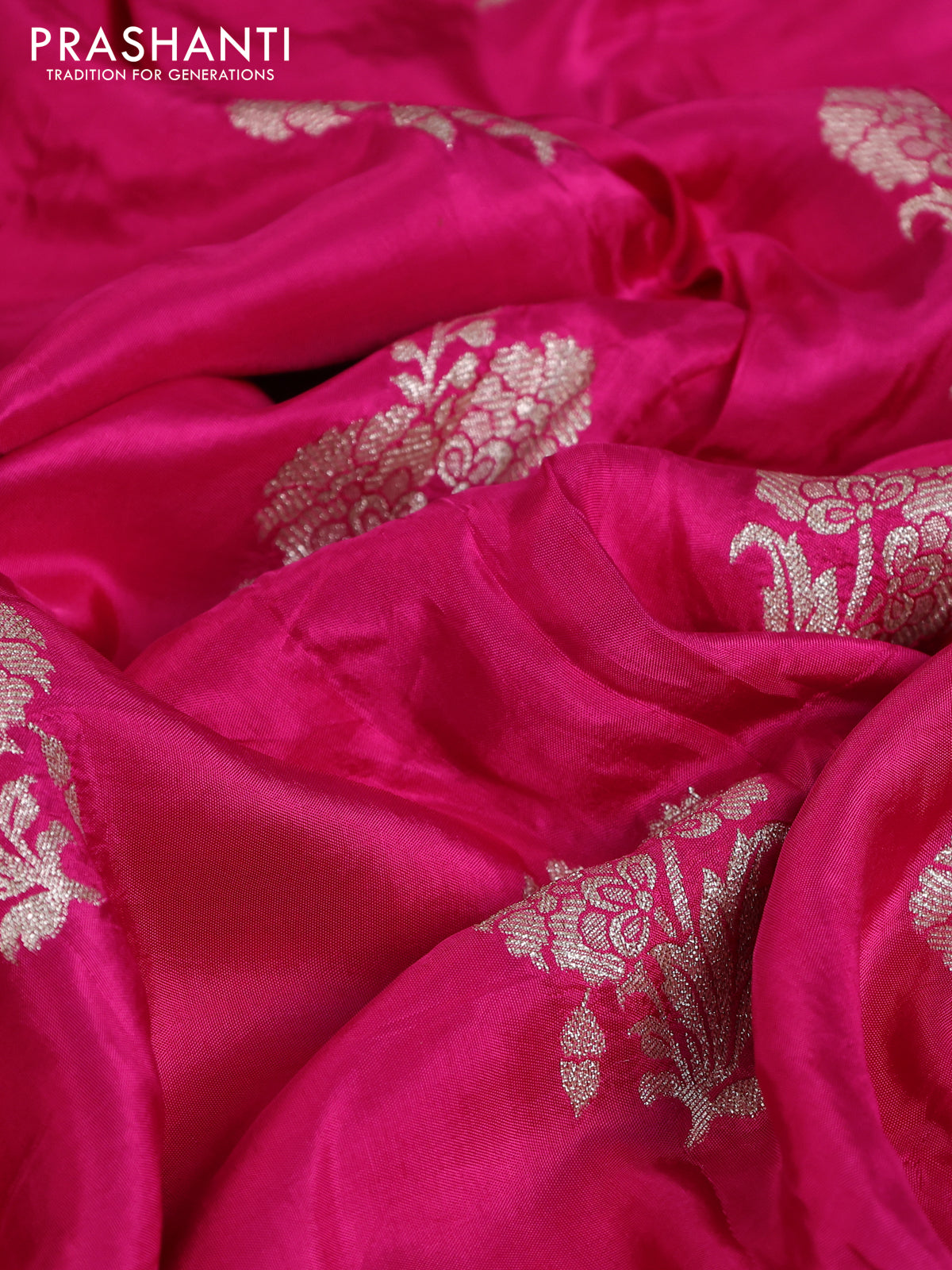 Banarasi silk saree pink with floral zari woven buttas and beaded work border