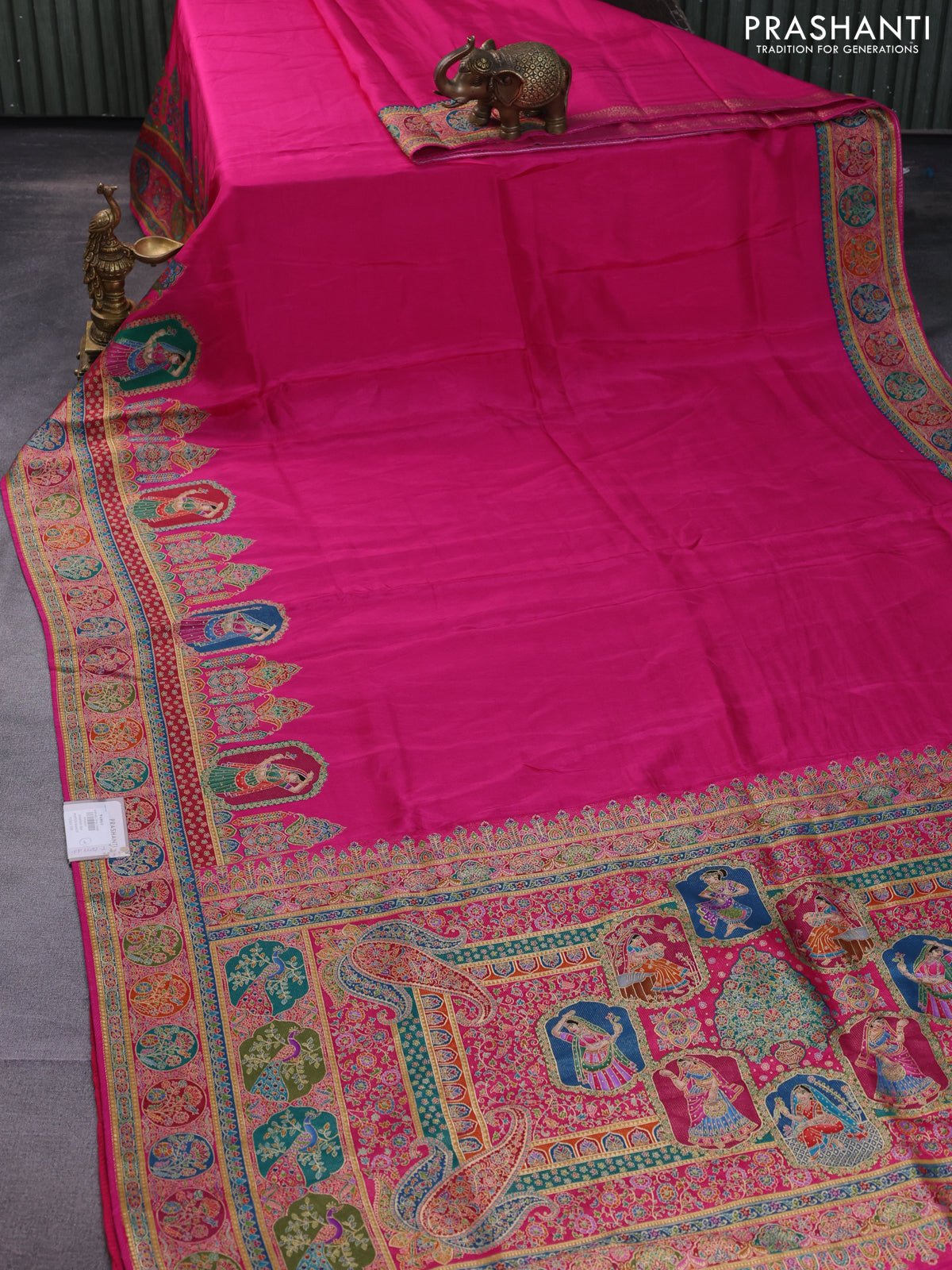 Banarasi silk saree pink with plain body and position prints