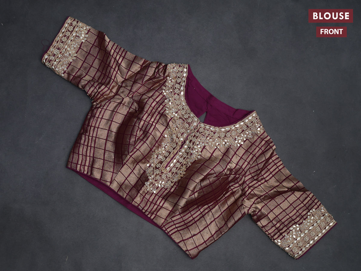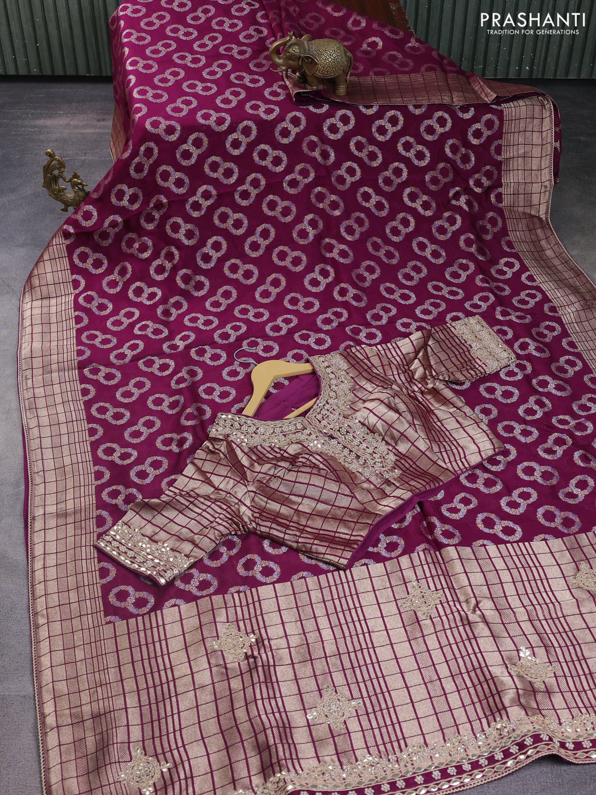 Banarasi silk saree purple and multi colour with allover silver & gold zari woven buttas and gotapatti work pallu