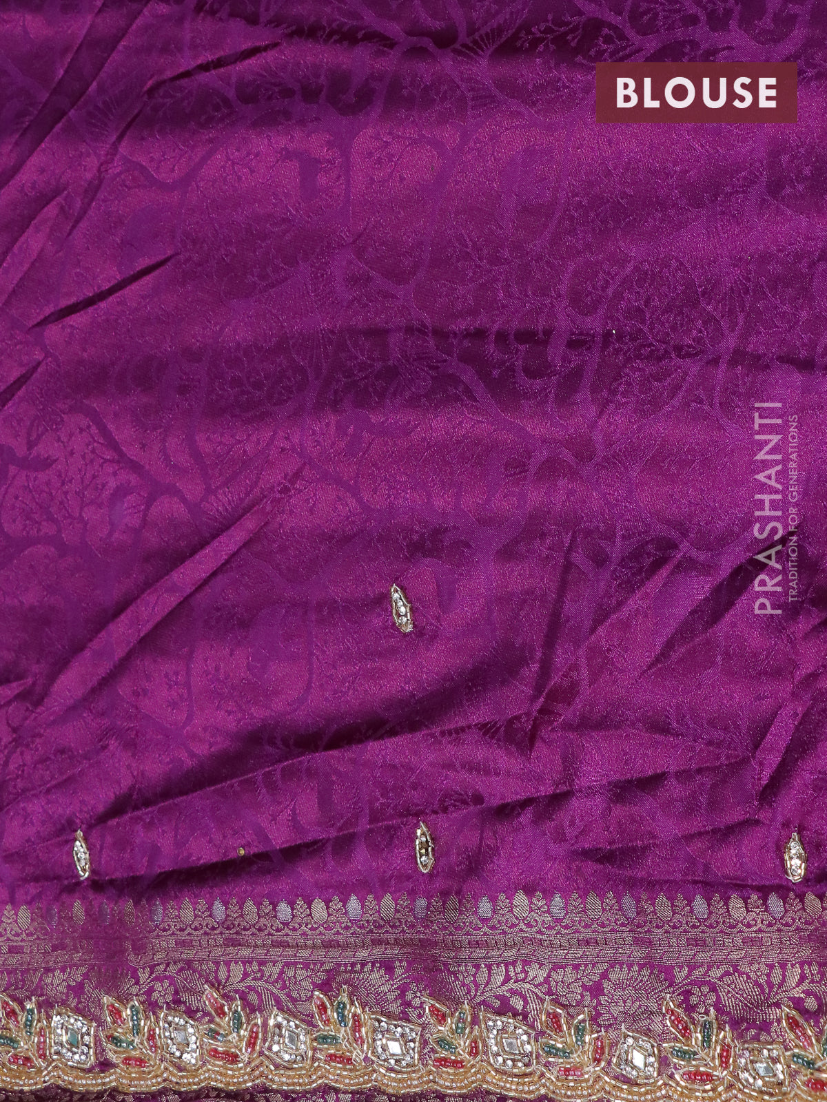Banarasi silk saree purple with allover zari woven brocade weaves and embroidery mirror work border