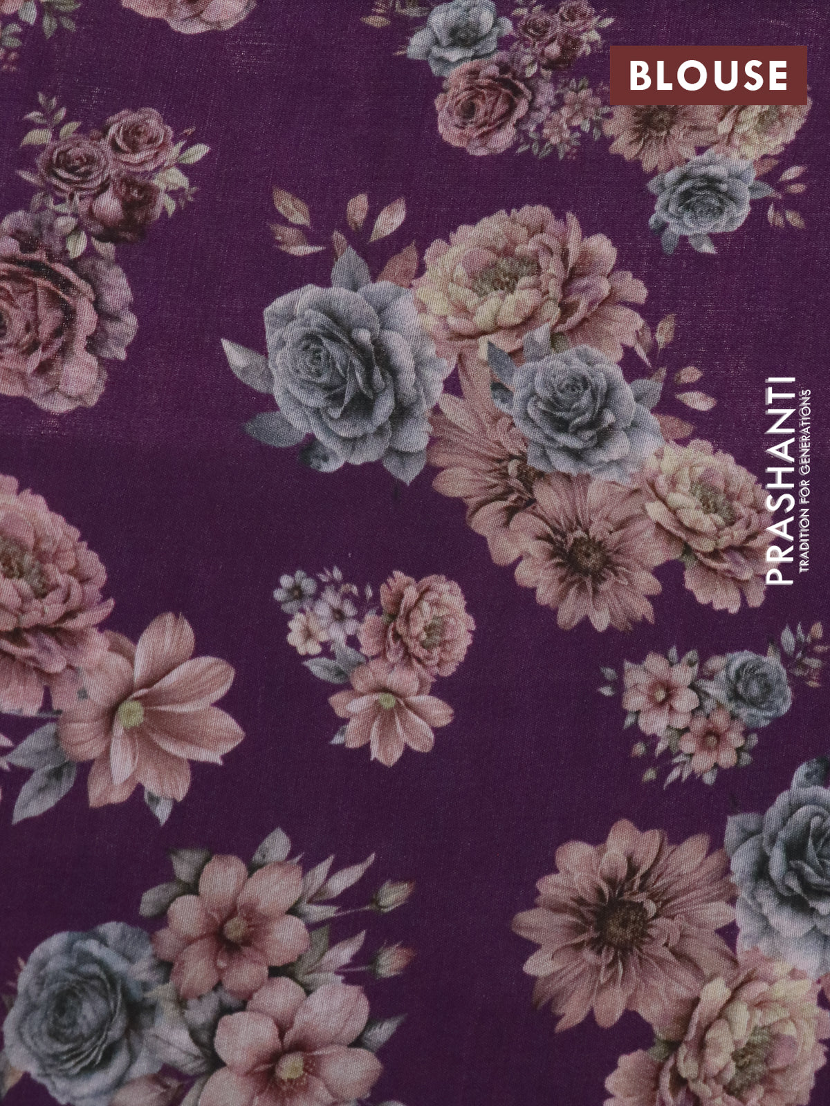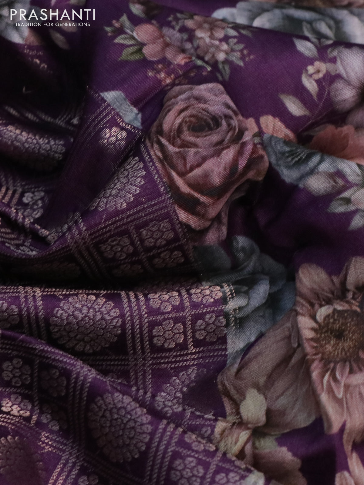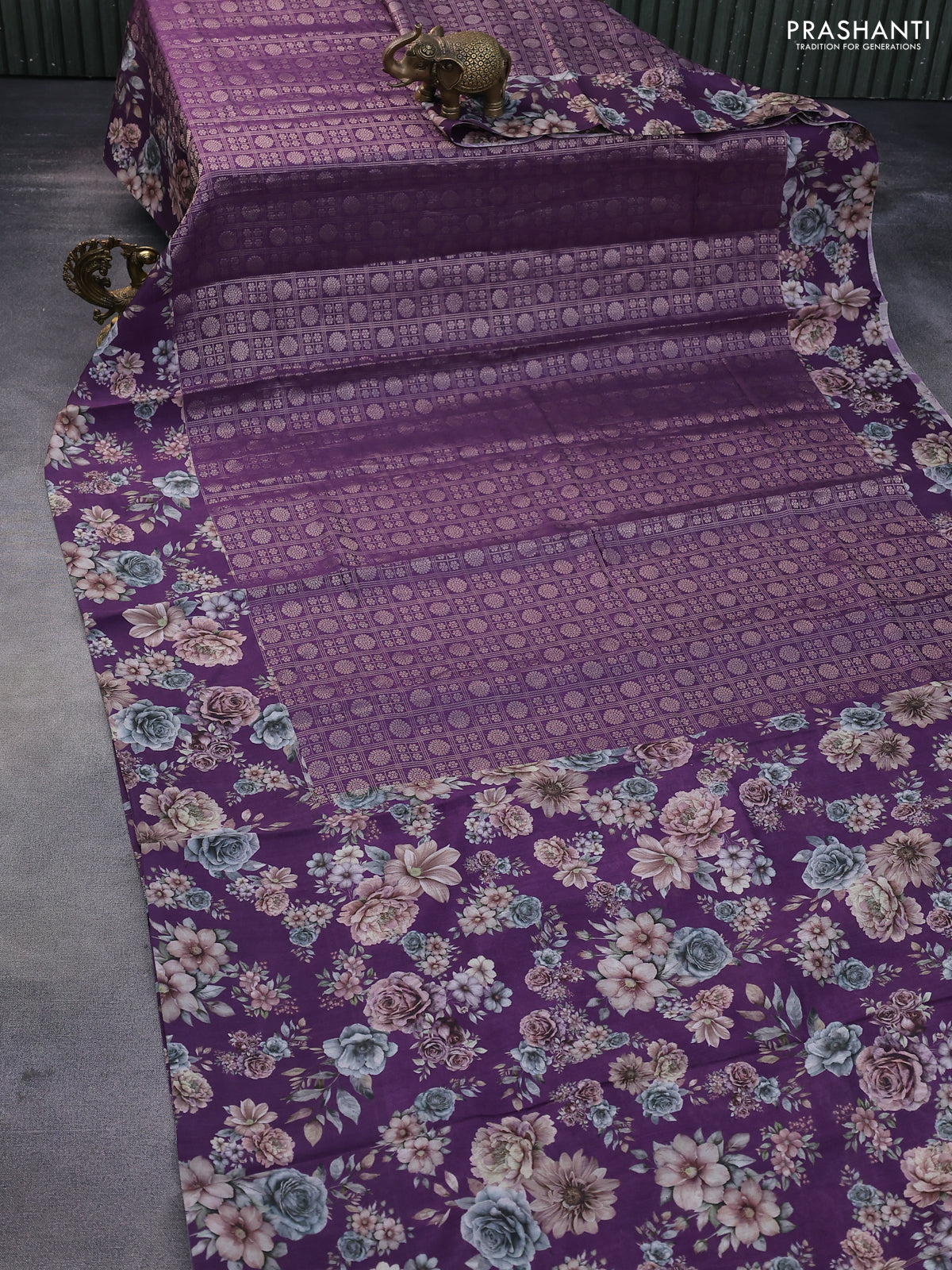 Banarasi silk saree purple with allover zari woven brocade weaves and floral digital printed border