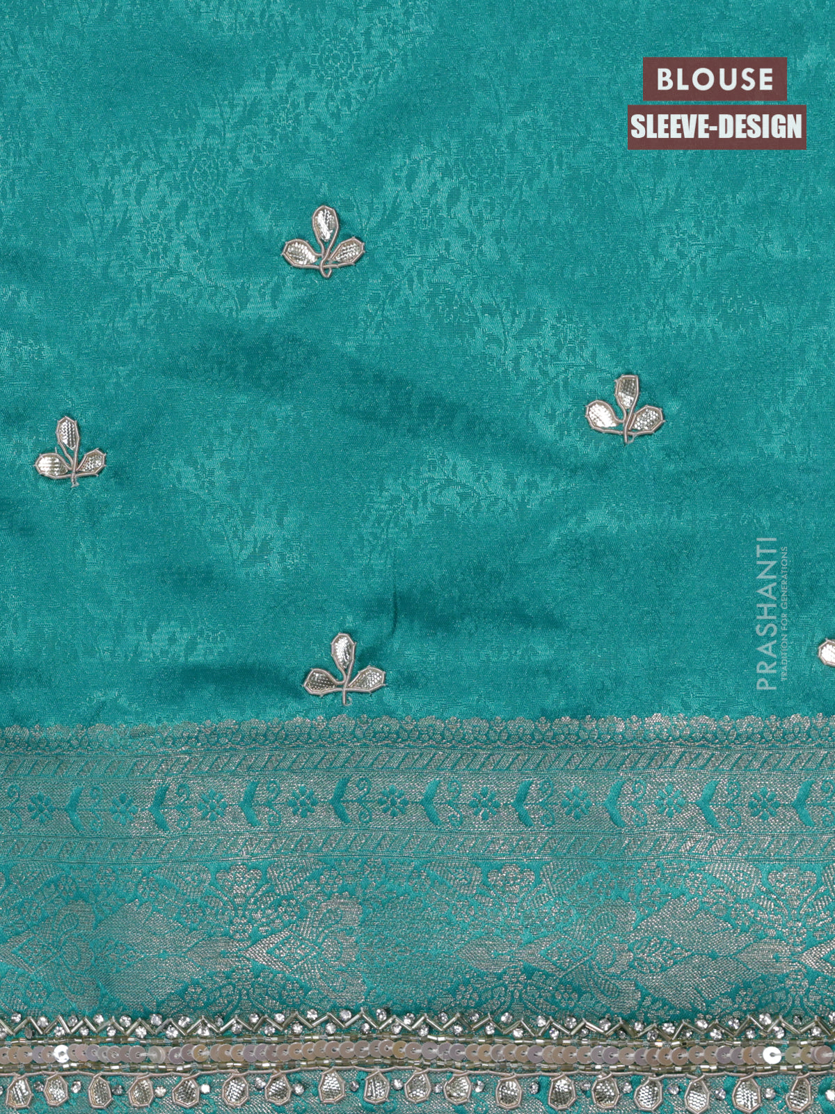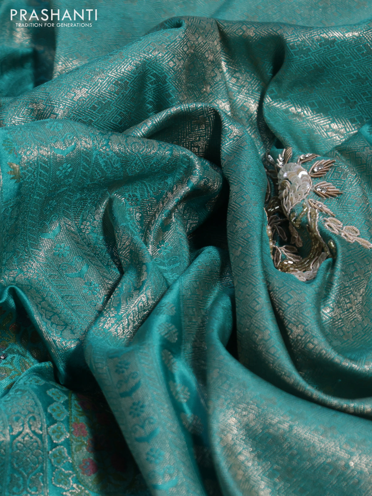 Banarasi silk saree teal blue with allover zari woven brocade weaves and embroidery sequin work border