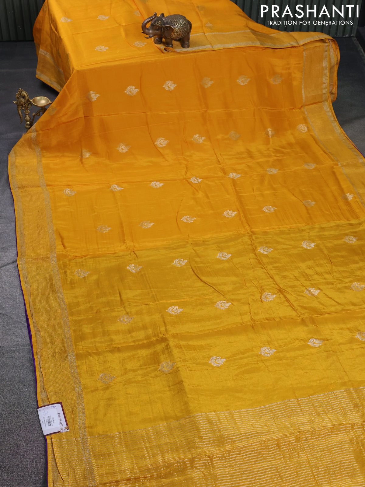 Banarasi silk saree yellow and violet with annam zari woven buttas and zari woven border