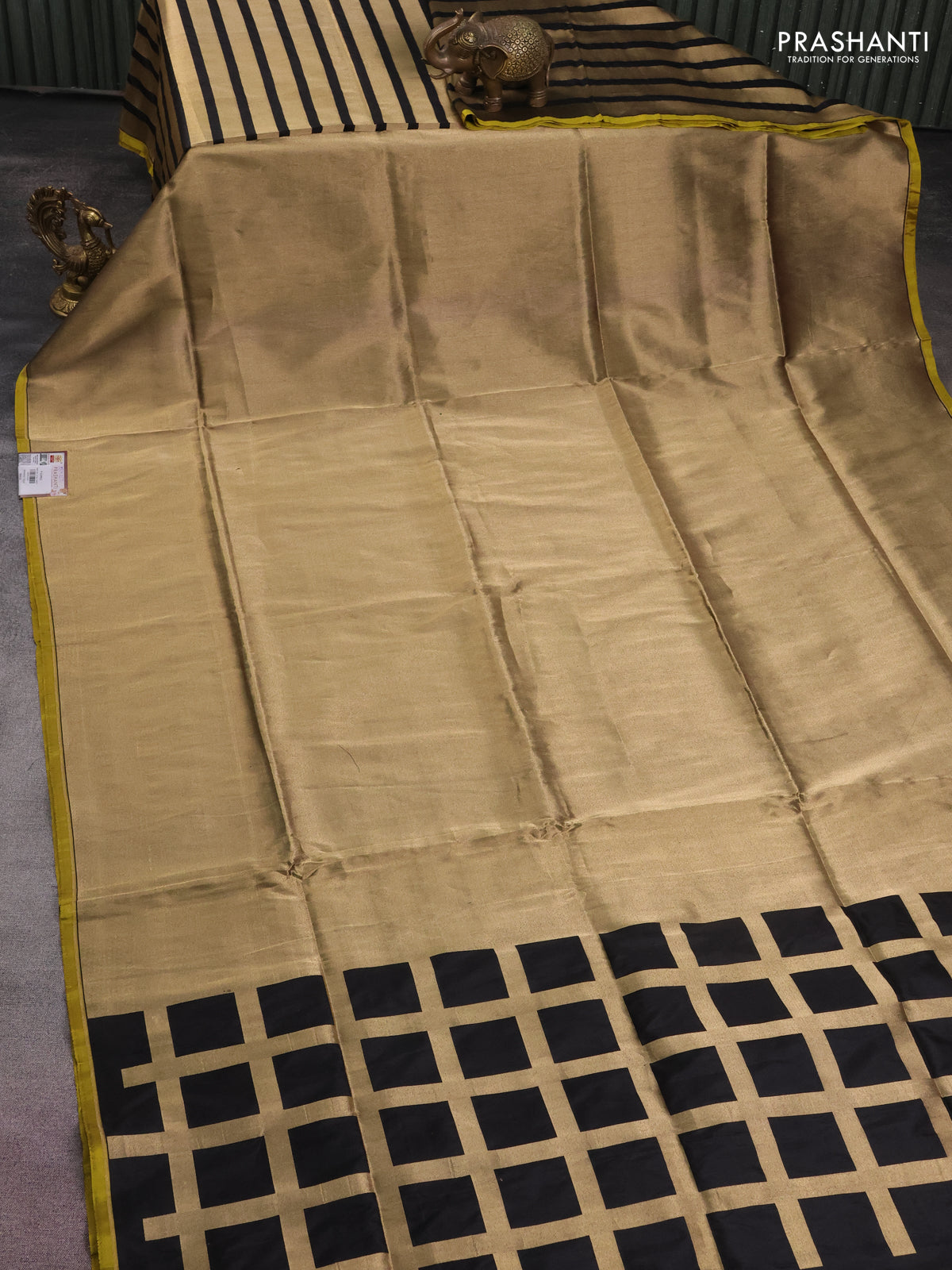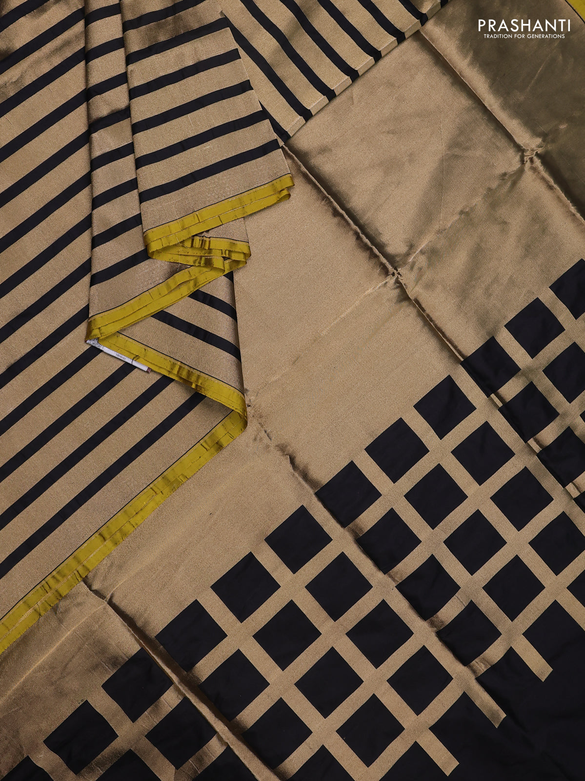 Banarasi tissue partly saree gold and black with plain body and piping border