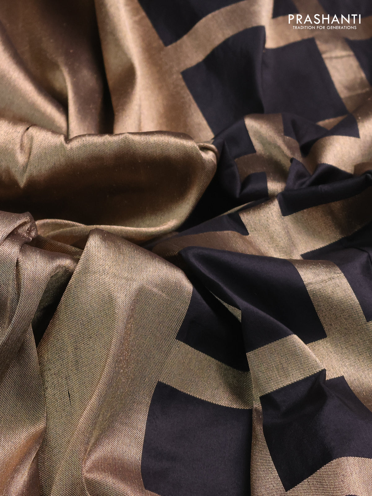 Banarasi tissue partly saree gold and black with plain body and piping border