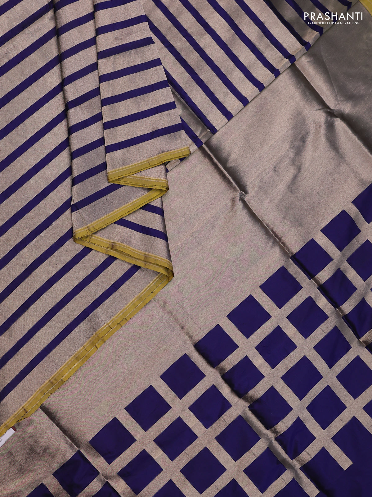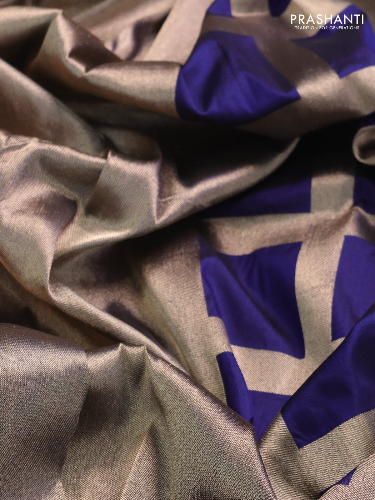 Banarasi tissue partly saree gold and navy blue with plain body and piping border