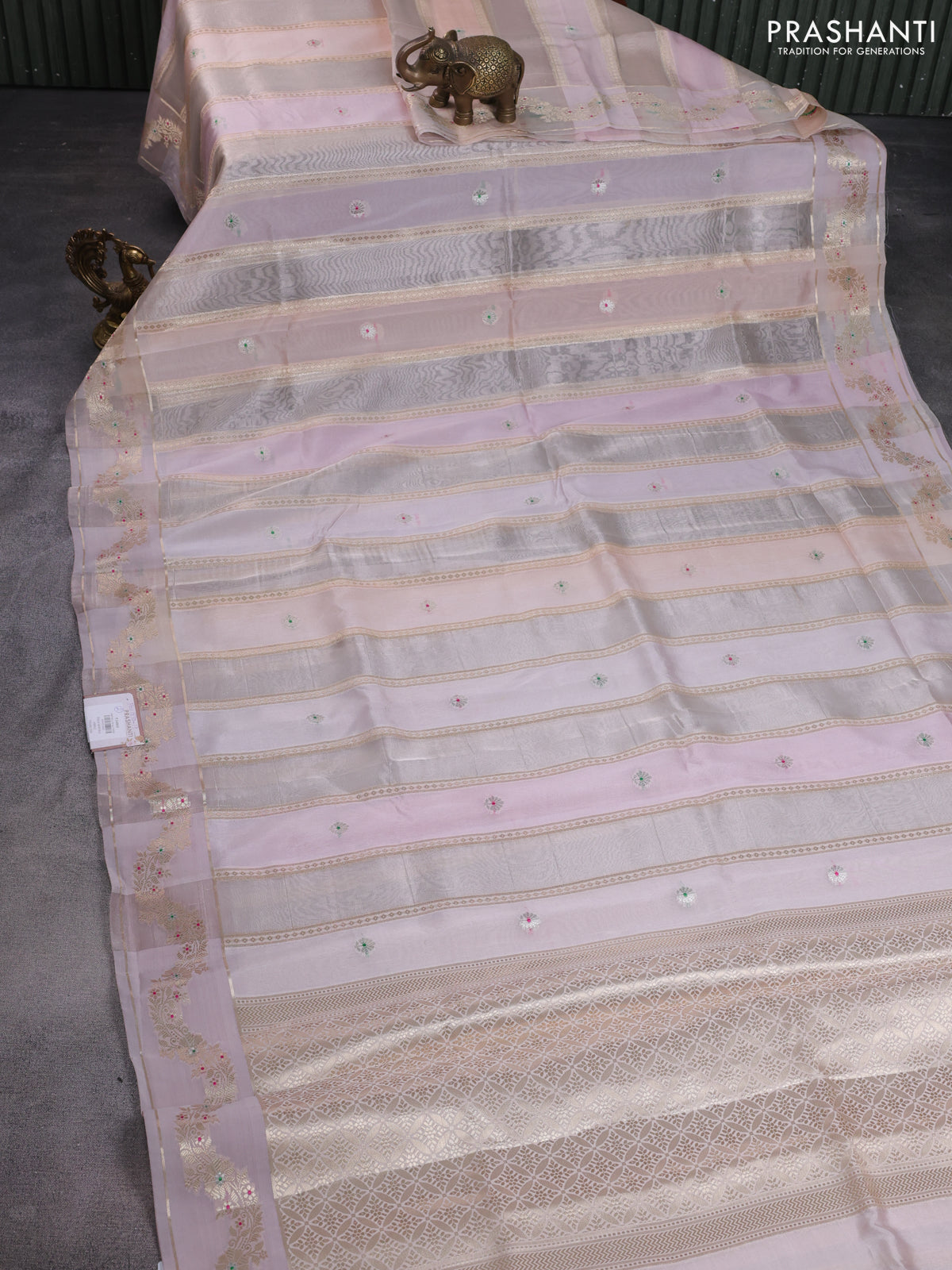 Banarasi tissue semi silk saree pastel peach with zari weaves & buttas and zari woven border