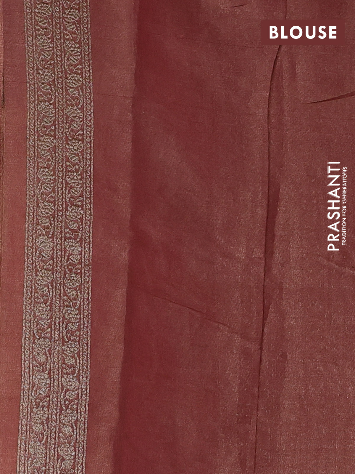 Banarasi tissue silk cotton saree sandal and maroon with zari woven buttas and woven border