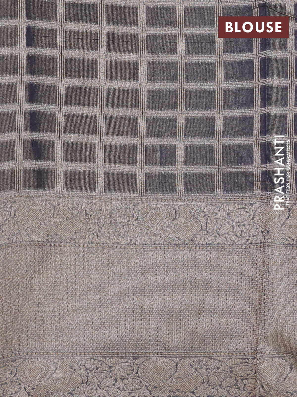 Banarasi tissue silk cotton saree sandal and navy blue with plain body and long woven border
