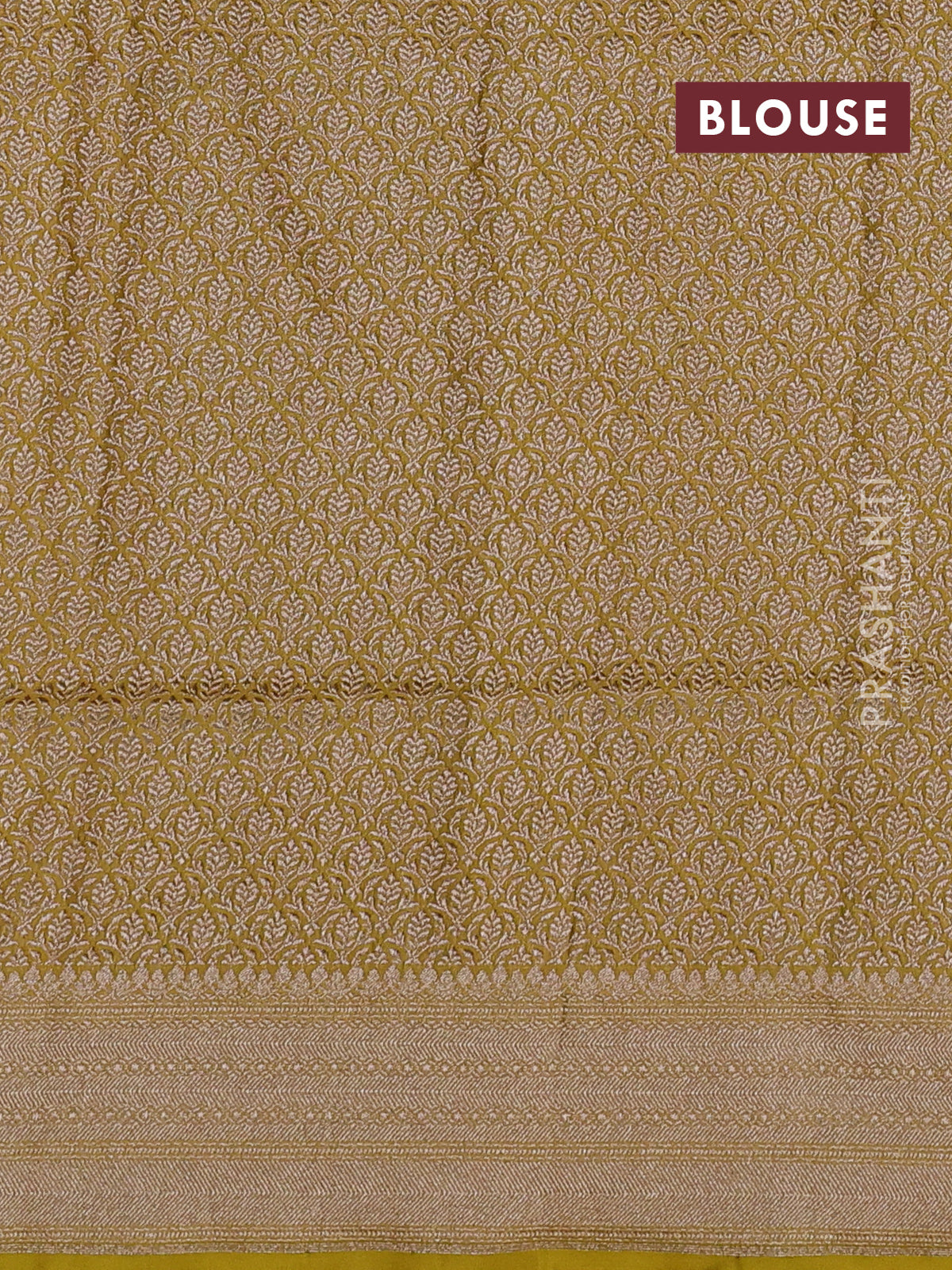 Banarasi tissue silk saree lime yellow with allover zari woven brocade weaves and zari woven border