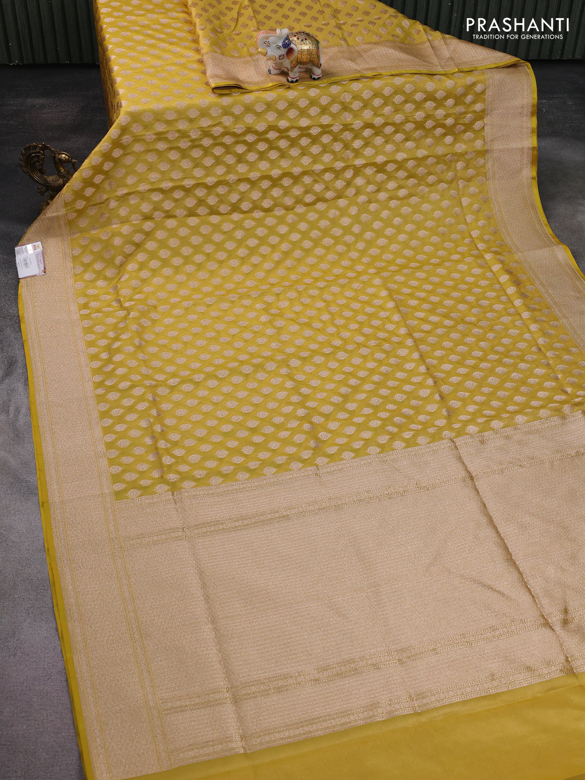 Banarasi tissue silk saree lime yellow with allover zari woven buttas and zari woven border
