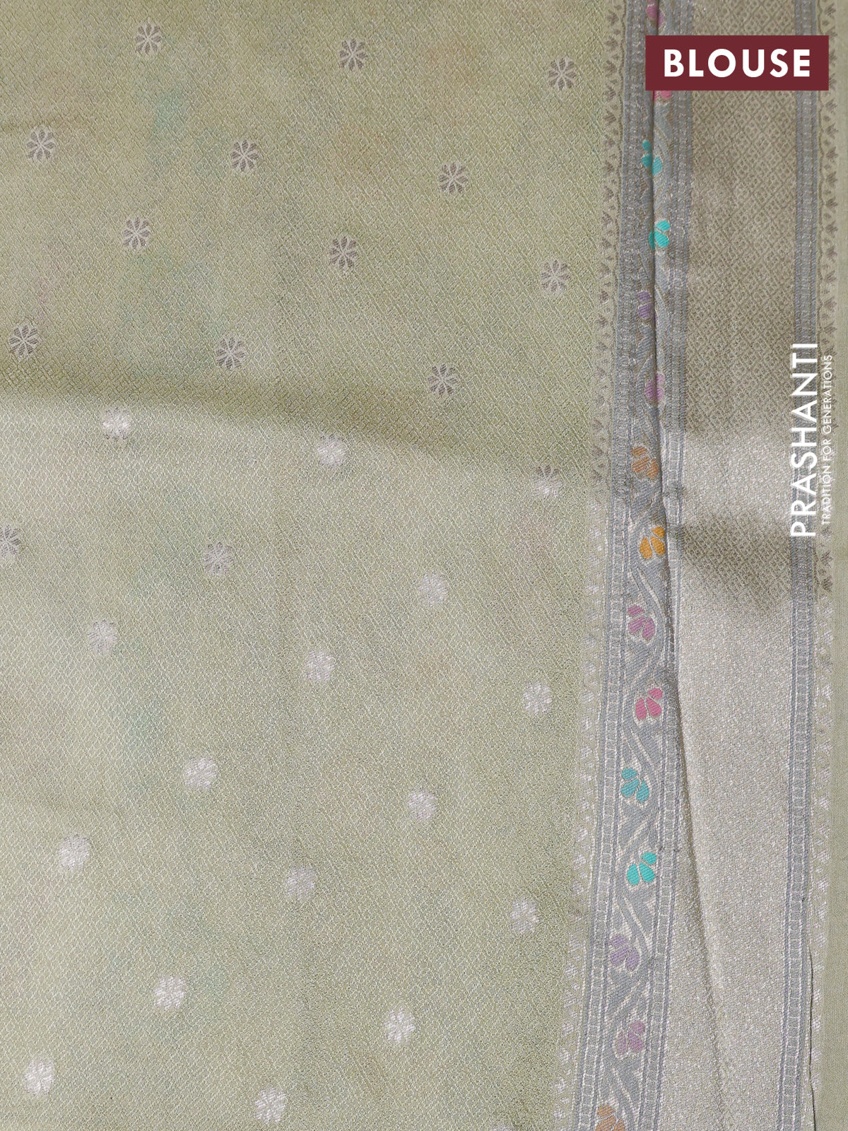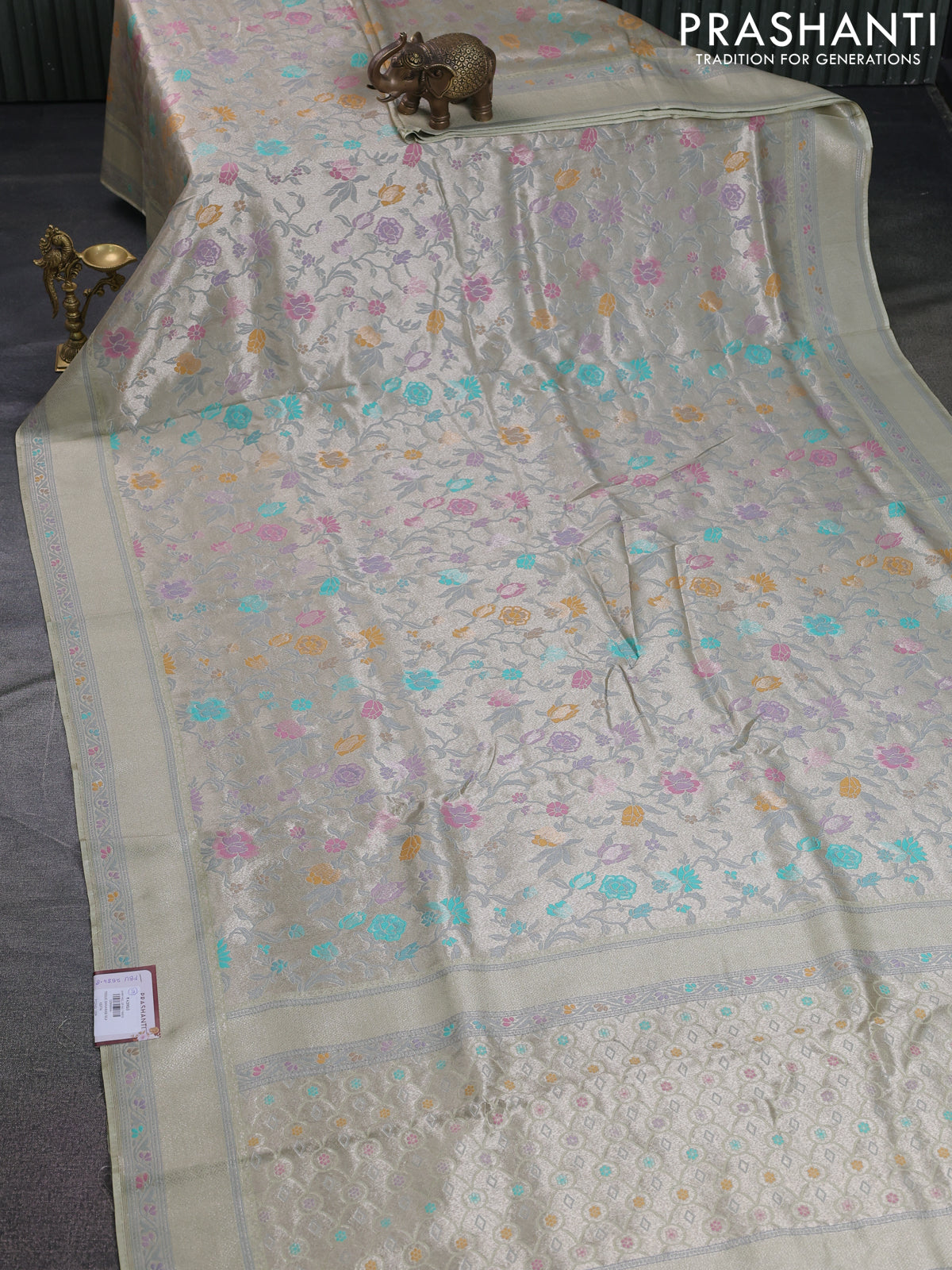 Banarasi tissue silk saree mild pista green with allover thread woven floral weaves and silver zari woven border