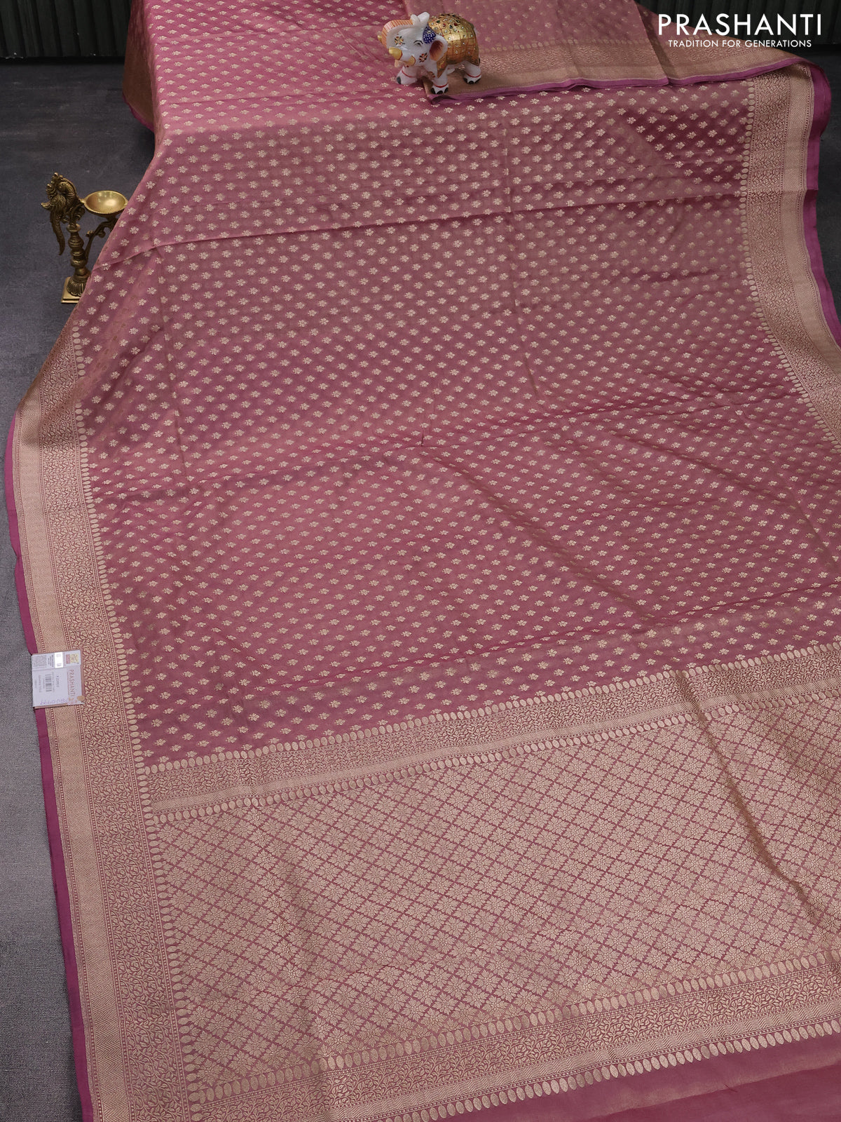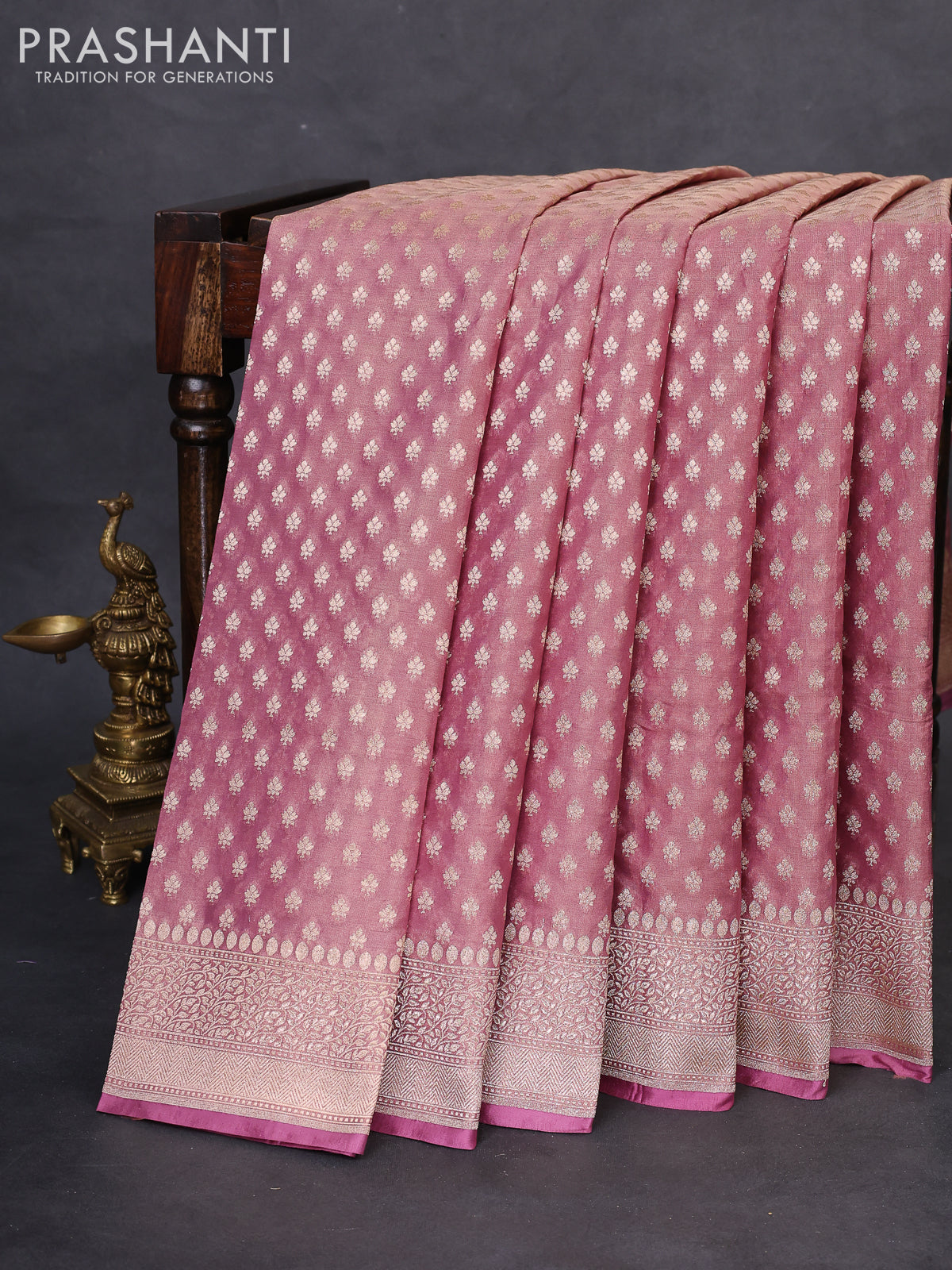 Banarasi tissue silk saree pastel pink with allover zari woven brocade weaves and zari woven border