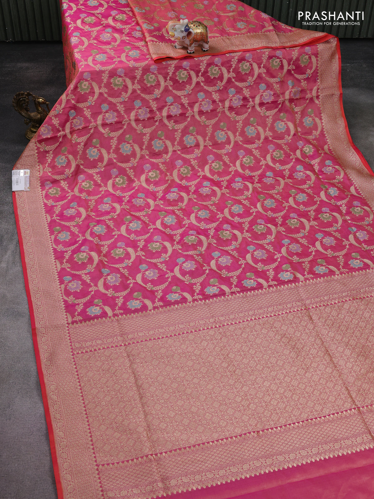 Banarasi tissue silk saree pink with allover zari woven brocade weaves and zari woven border