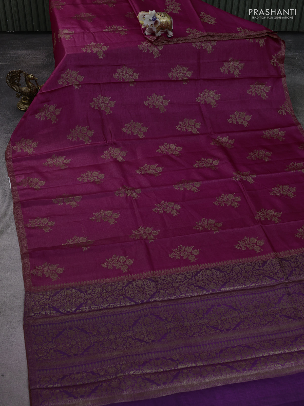 Banarasi tussar silk saree dark pink and purple with thread & zari woven buttas and woven border