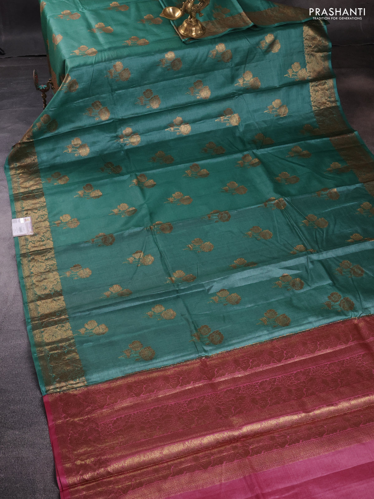 Banarasi tussar silk saree green shade and marron shade with woven buttas and banarasi style border