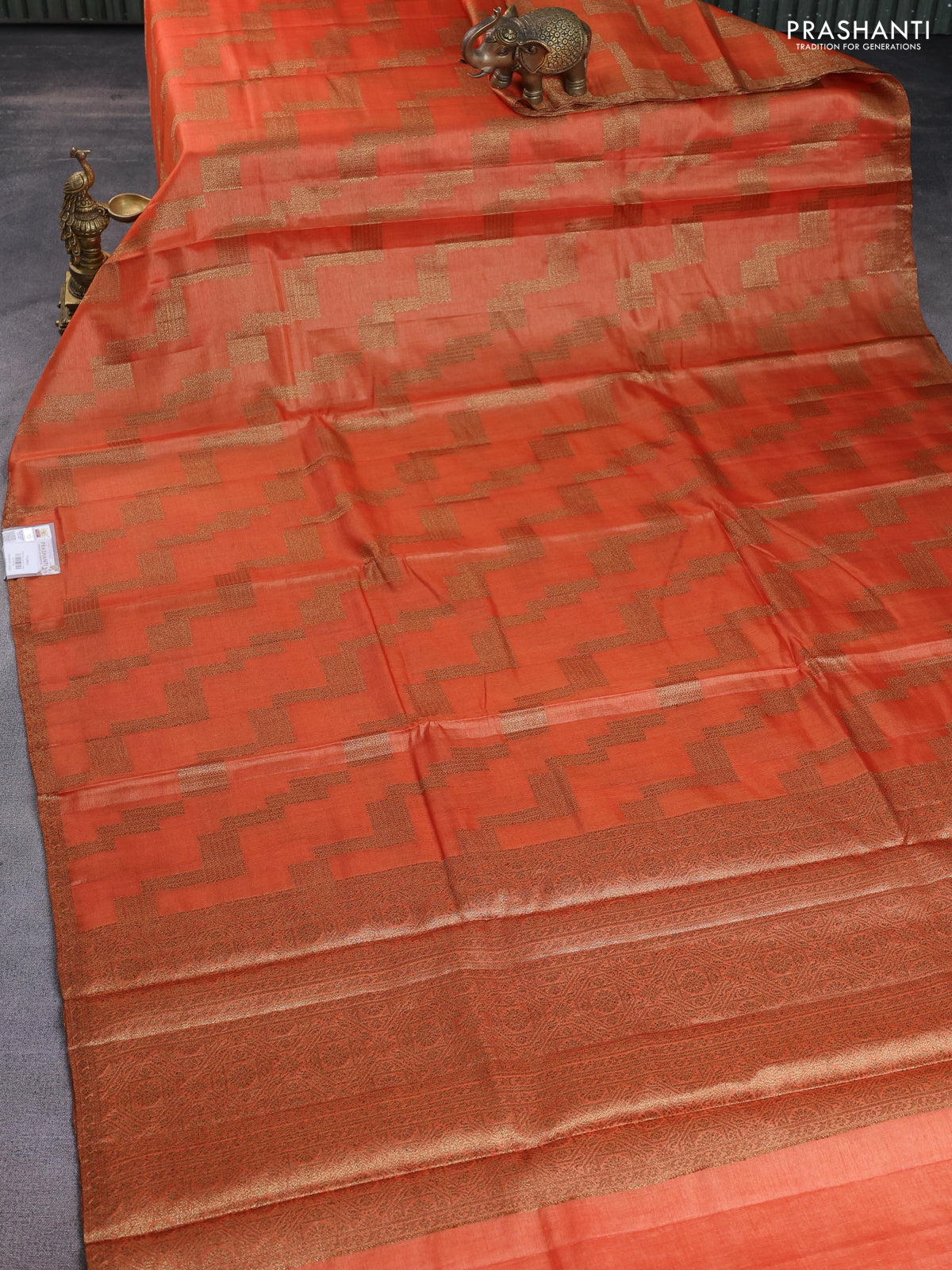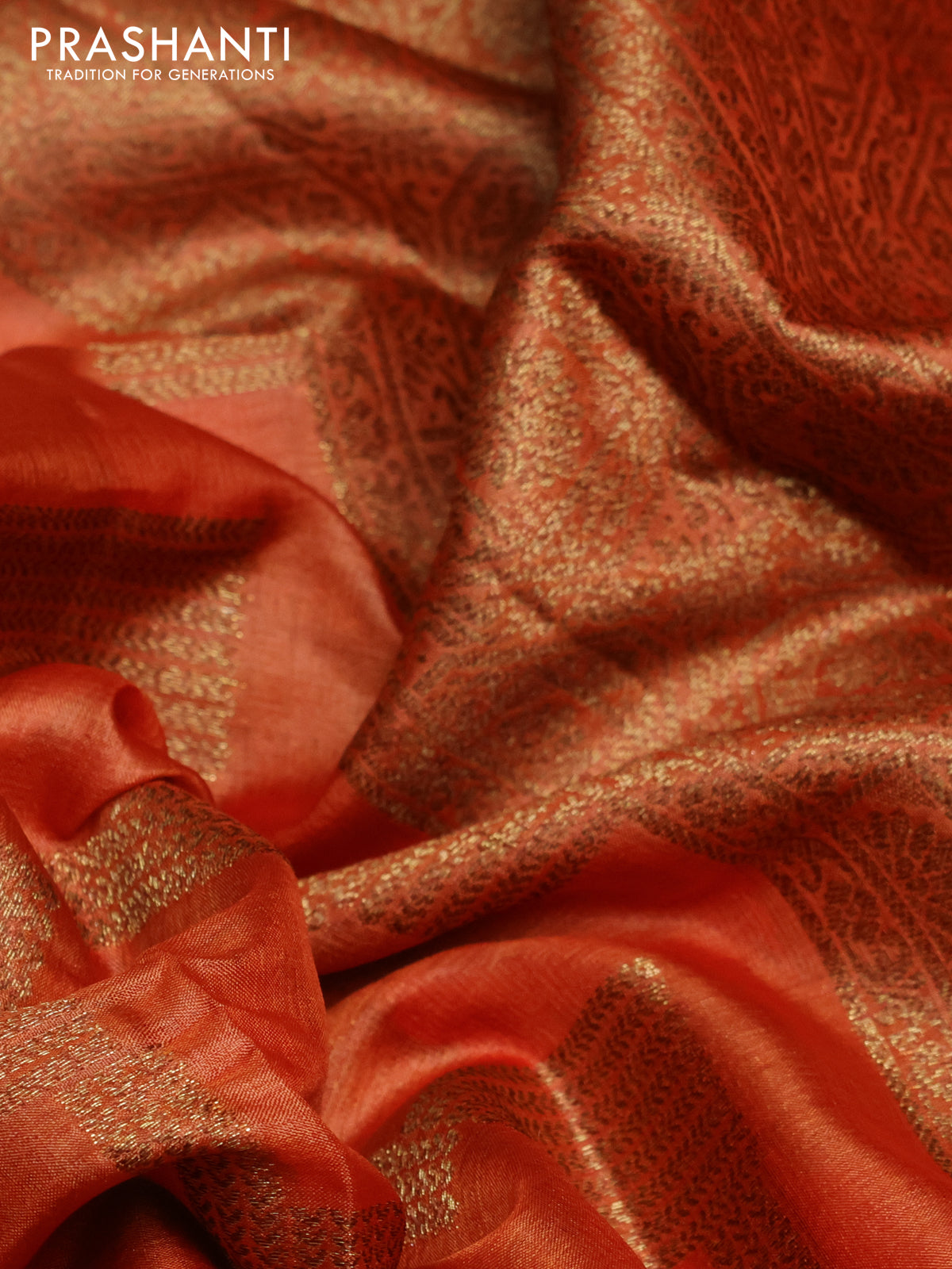 Banarasi tussar silk saree orange with allover thread & zari weaves and small woven border