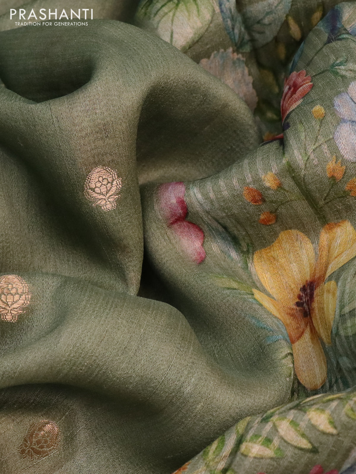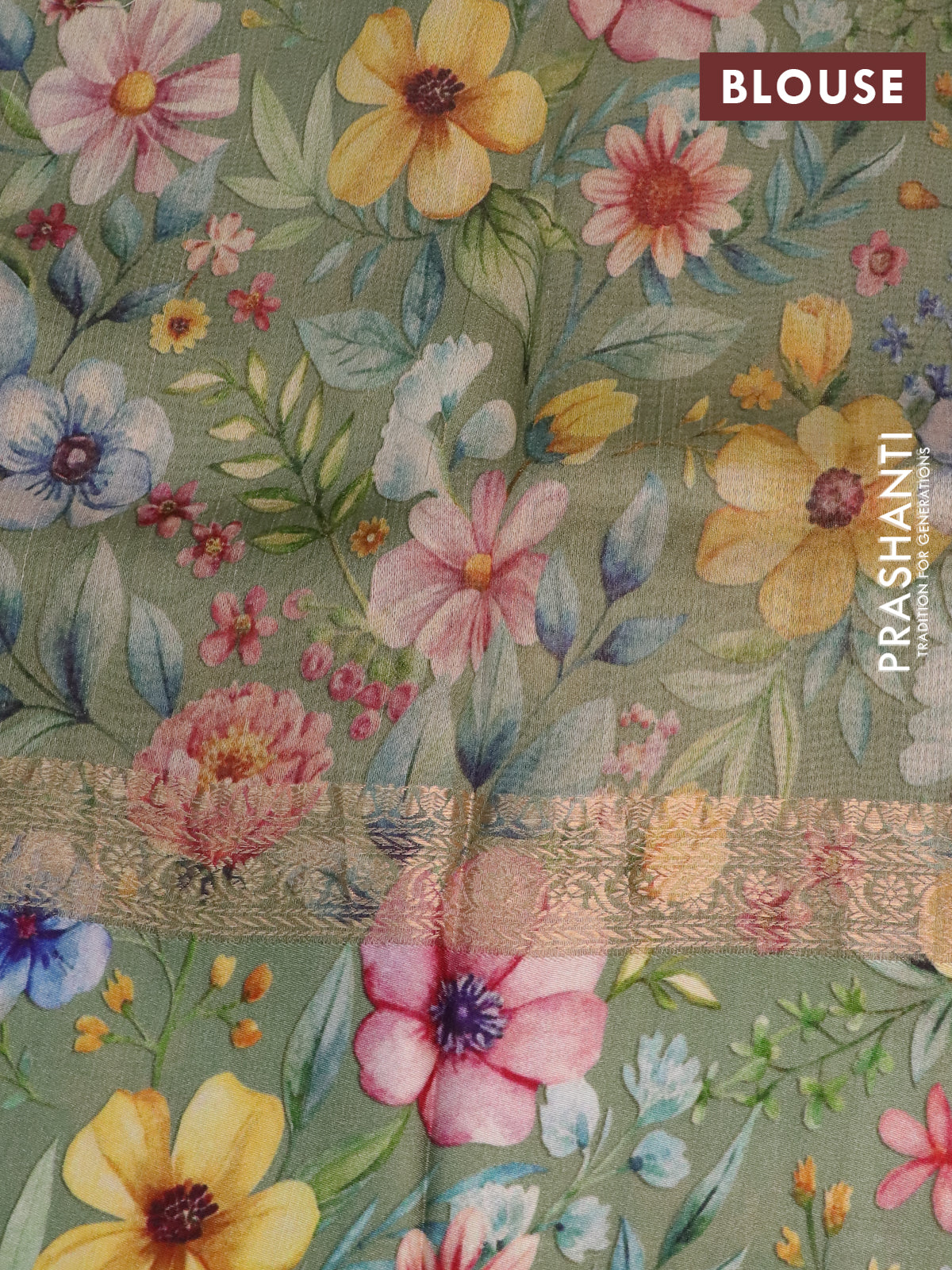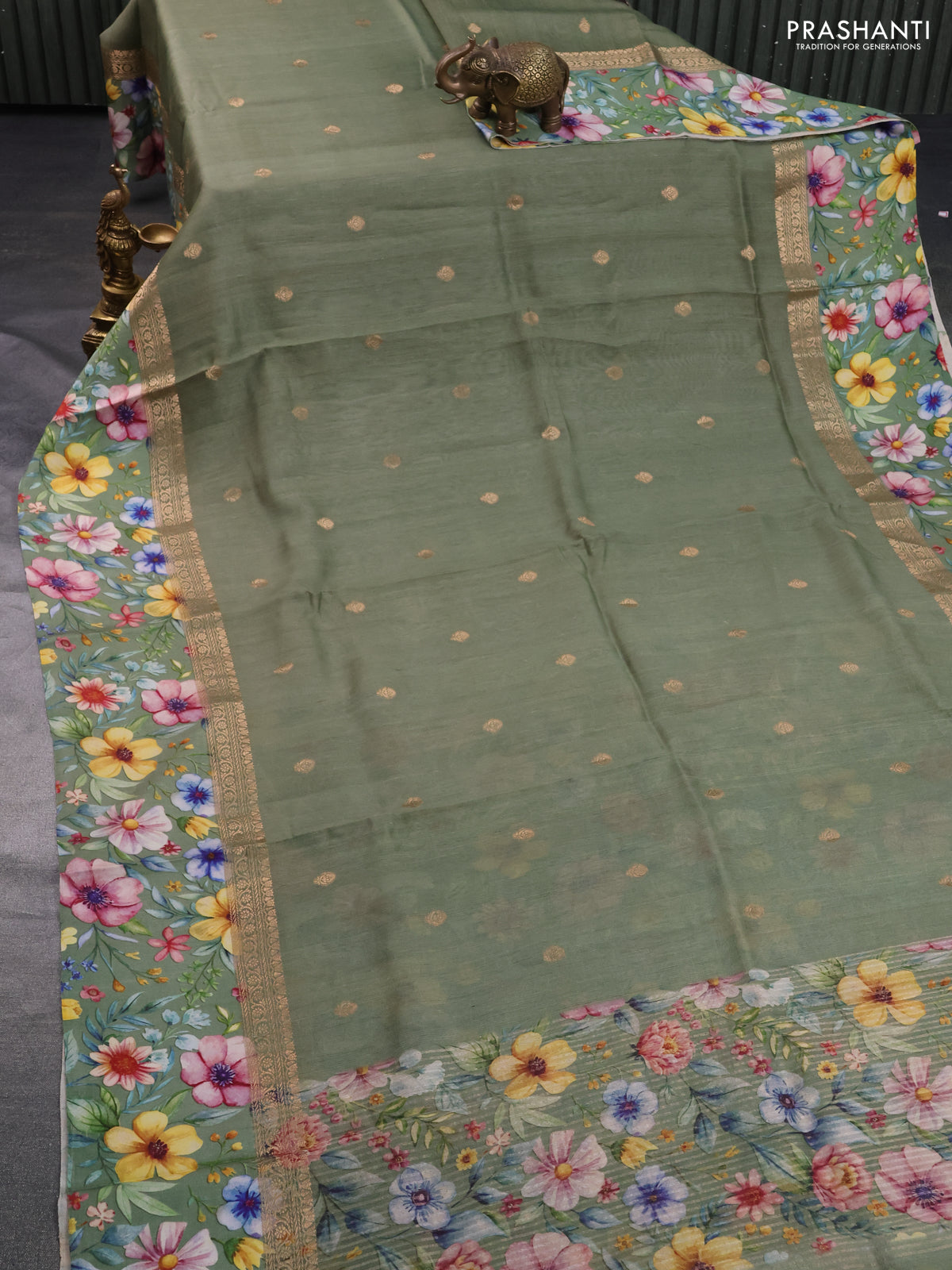 Banarasi tussar silk saree pastel green with zari woven buttas and zari woven floral digital printed border