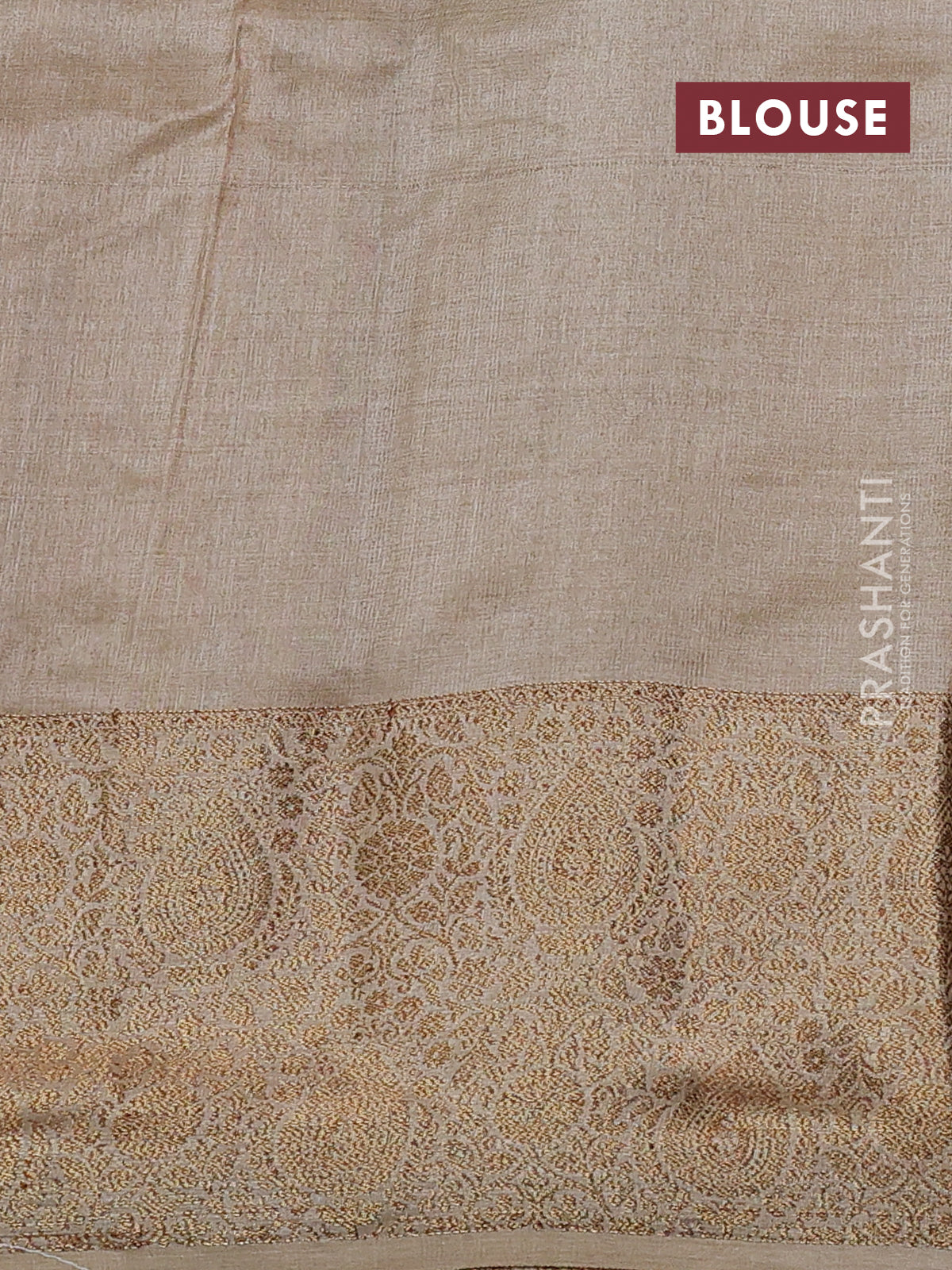 Banarasi tussar silk saree peacock blue and beige with allover thread & zari woven buttas and woven border