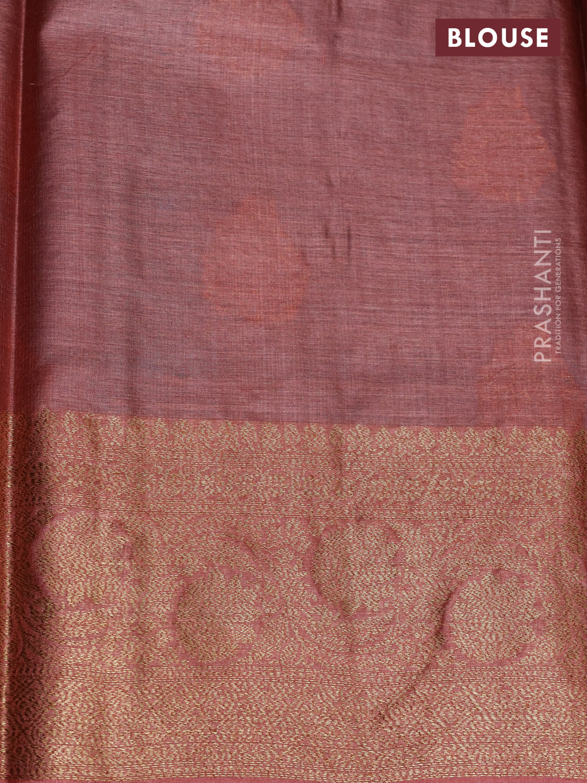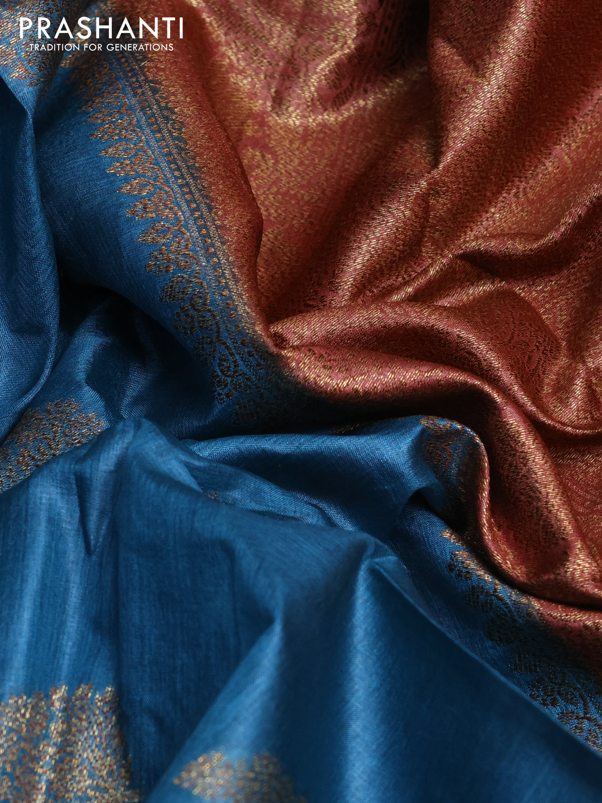 Banarasi tussar silk saree peacock blue and rust shade with thread & zari buttas and banarasi style border