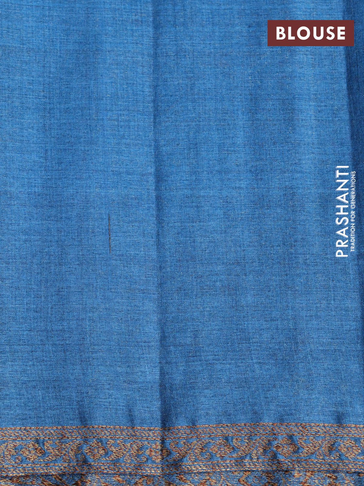 Banarasi tussar silk saree peacock blue shade with allover thread & zari weaves and small woven border