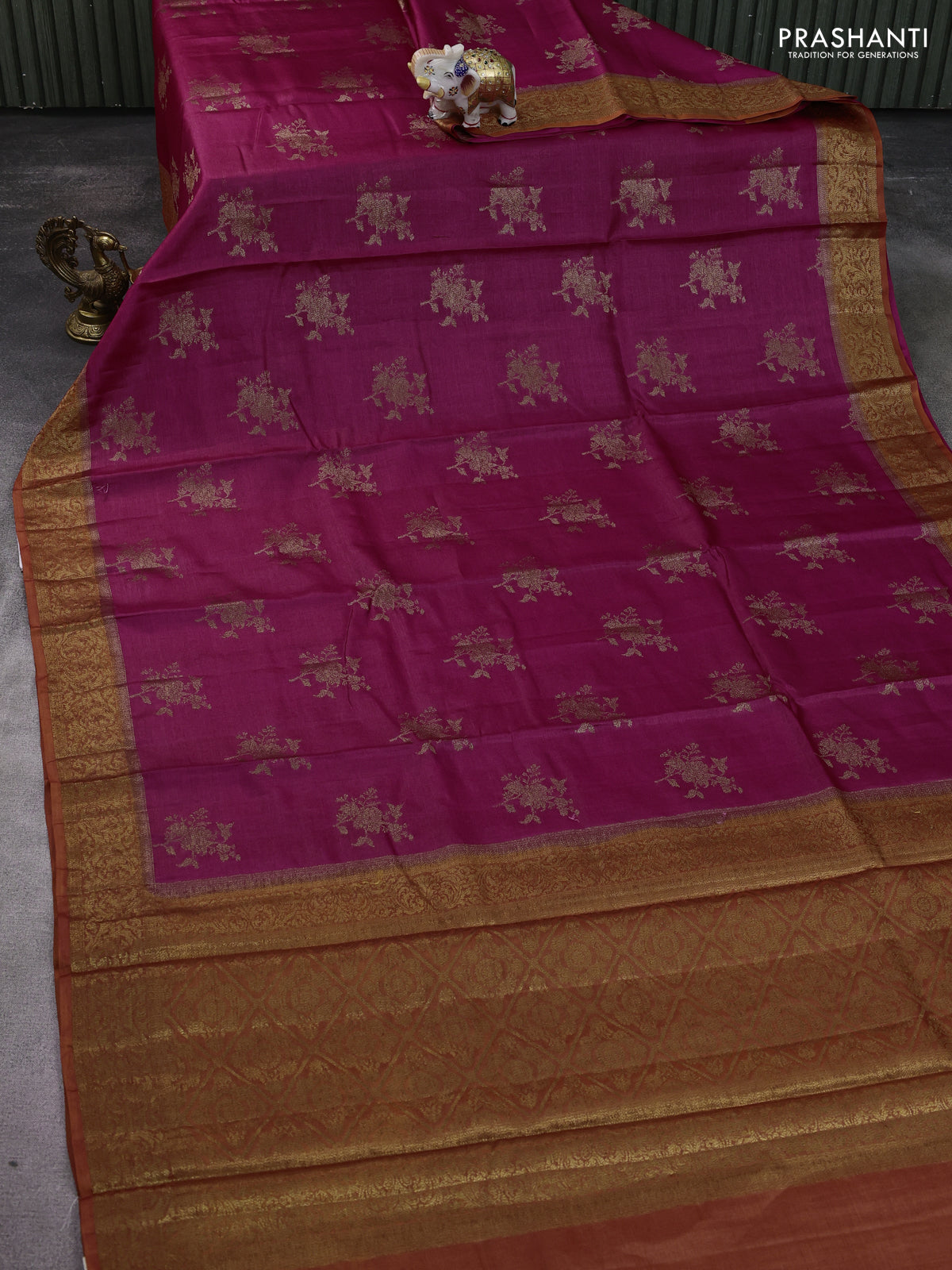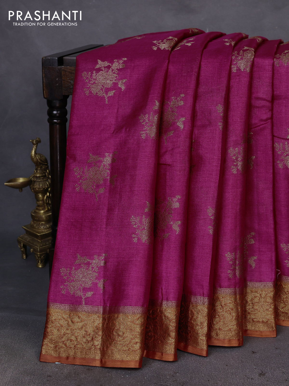 Pure Banarasi Tussar Silks by Prashanti embody heritage weaving with a rich texture and graceful finish. Crafted with fine zari details, these sarees reflect classic appeal.