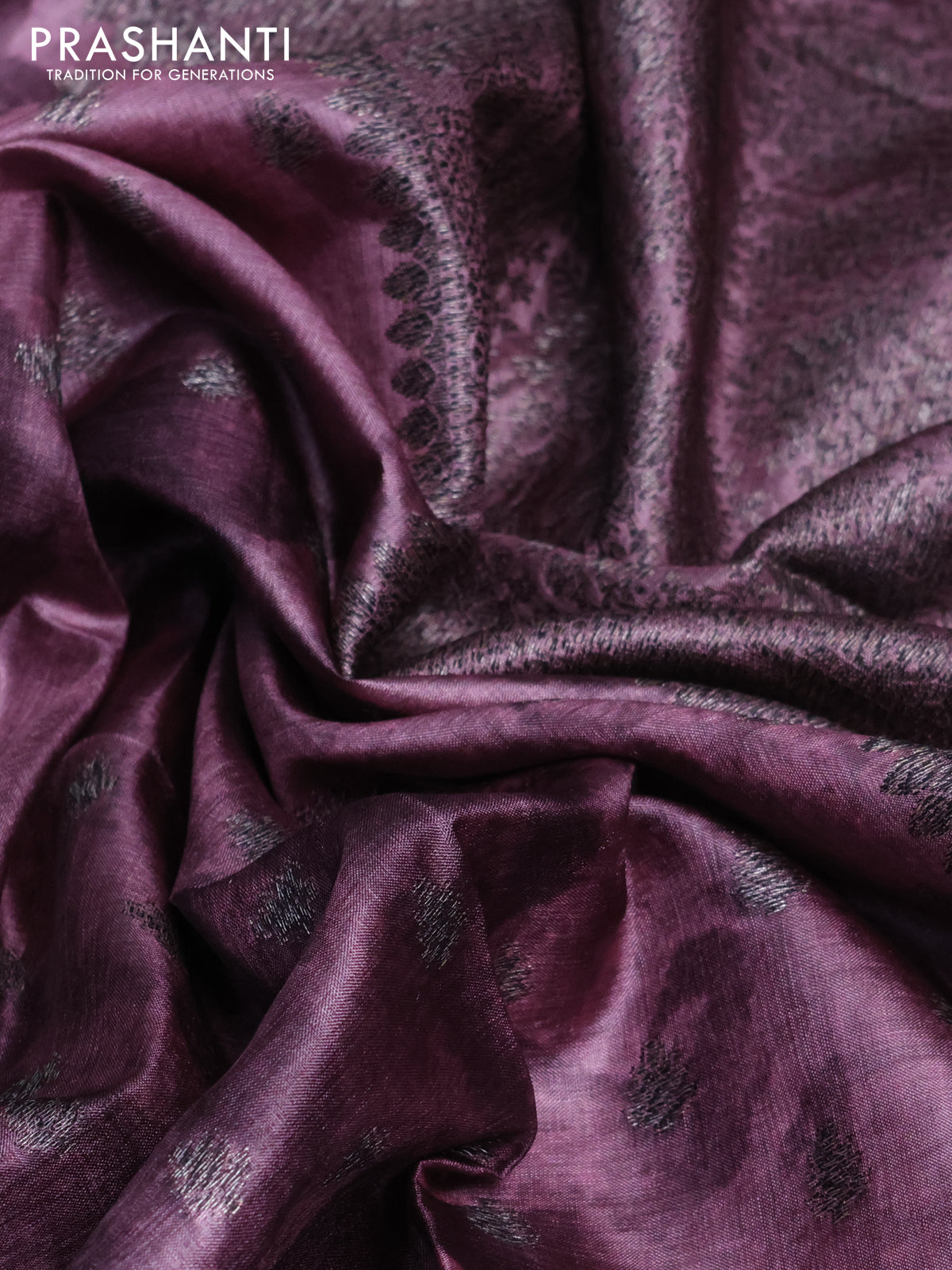 Banarasi tussar silk saree rosey brown with woven buttas & digital prints in borderless style