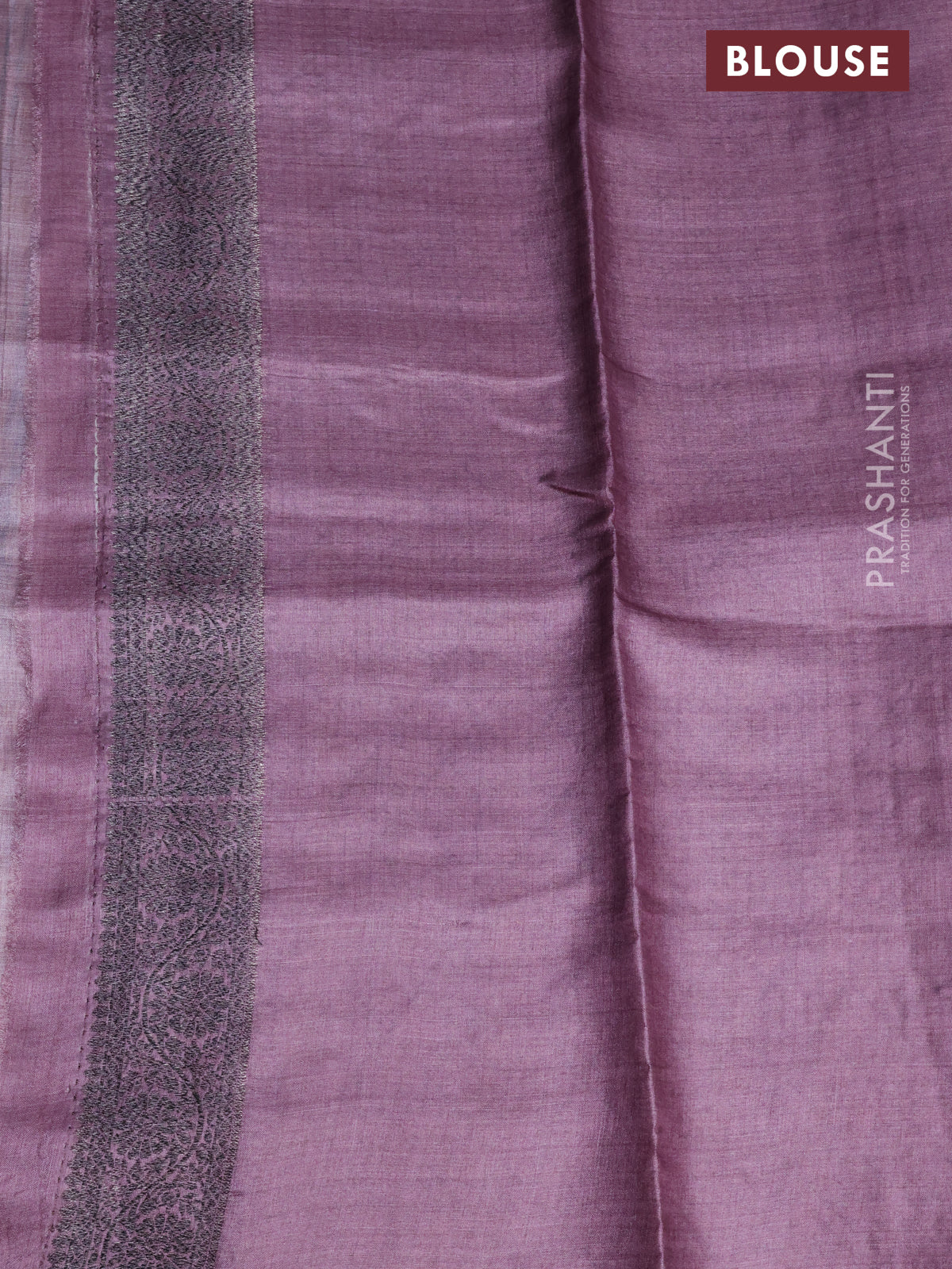 Banarasi tussar silk saree rosey brown with woven buttas & floral digital prints in borderless style