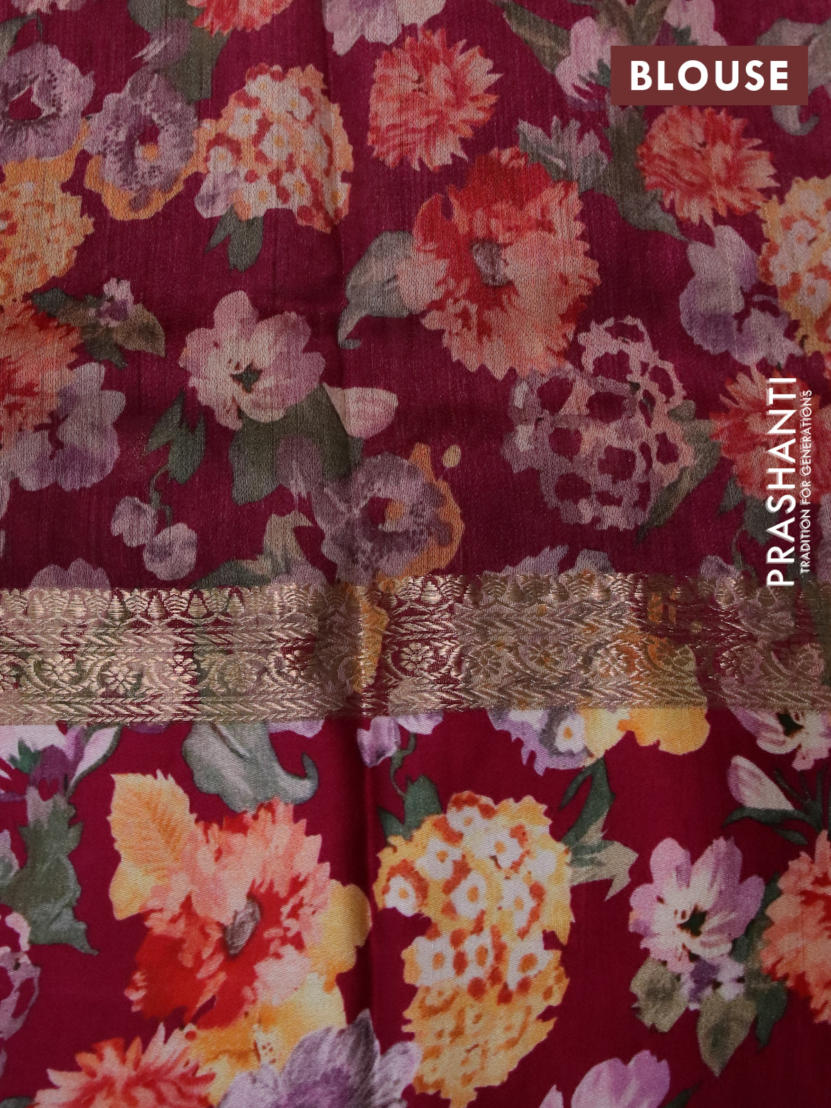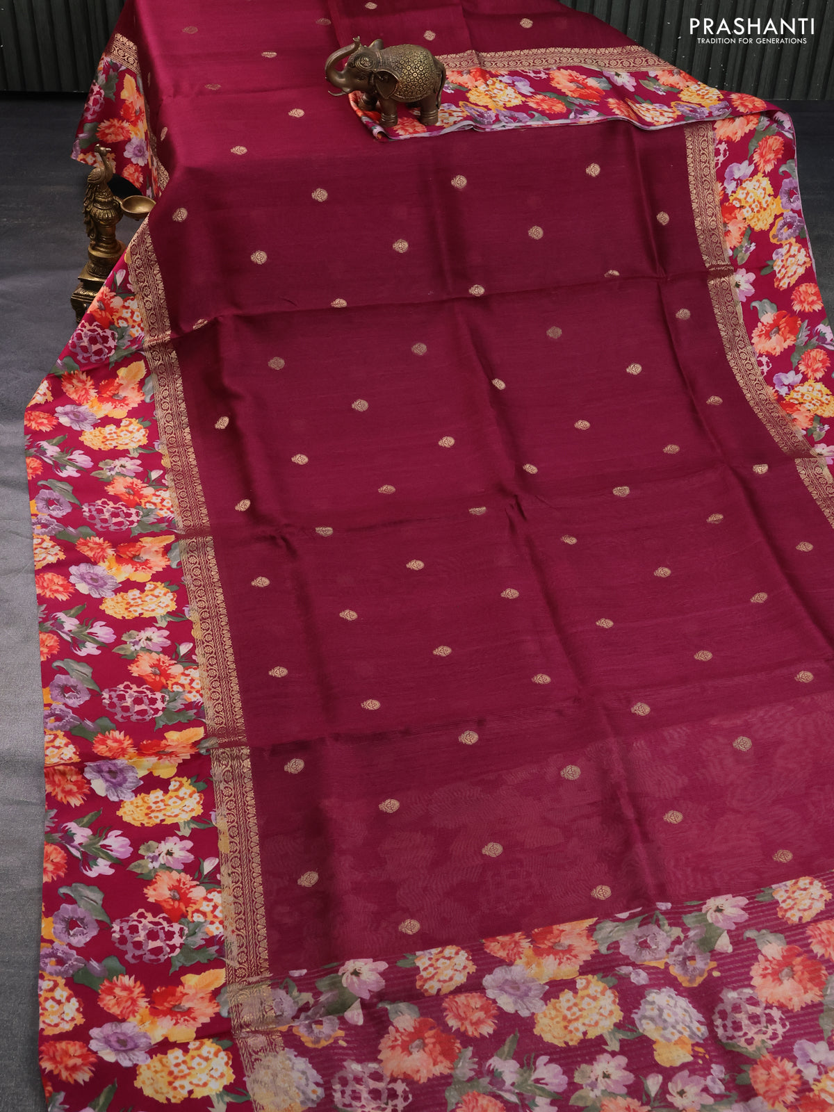Banarasi tussar silk saree wine shade and dark pink with zari woven buttas and zari woven floral digital printed border