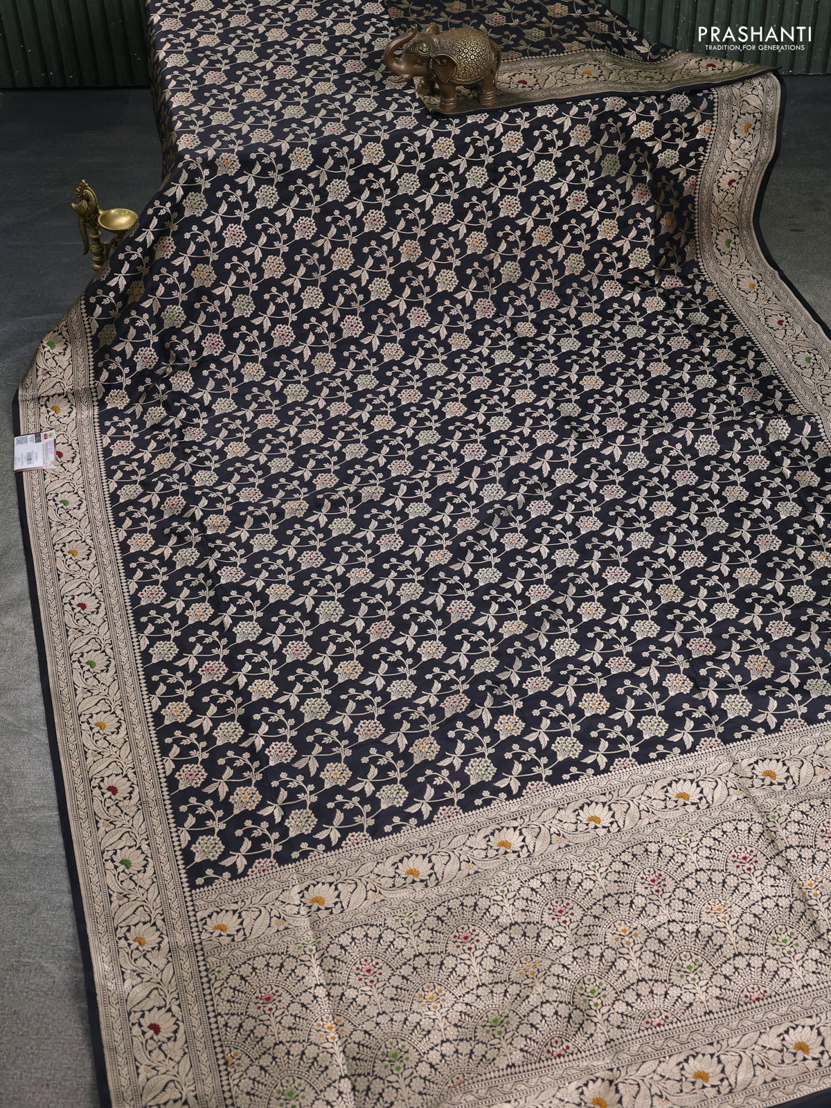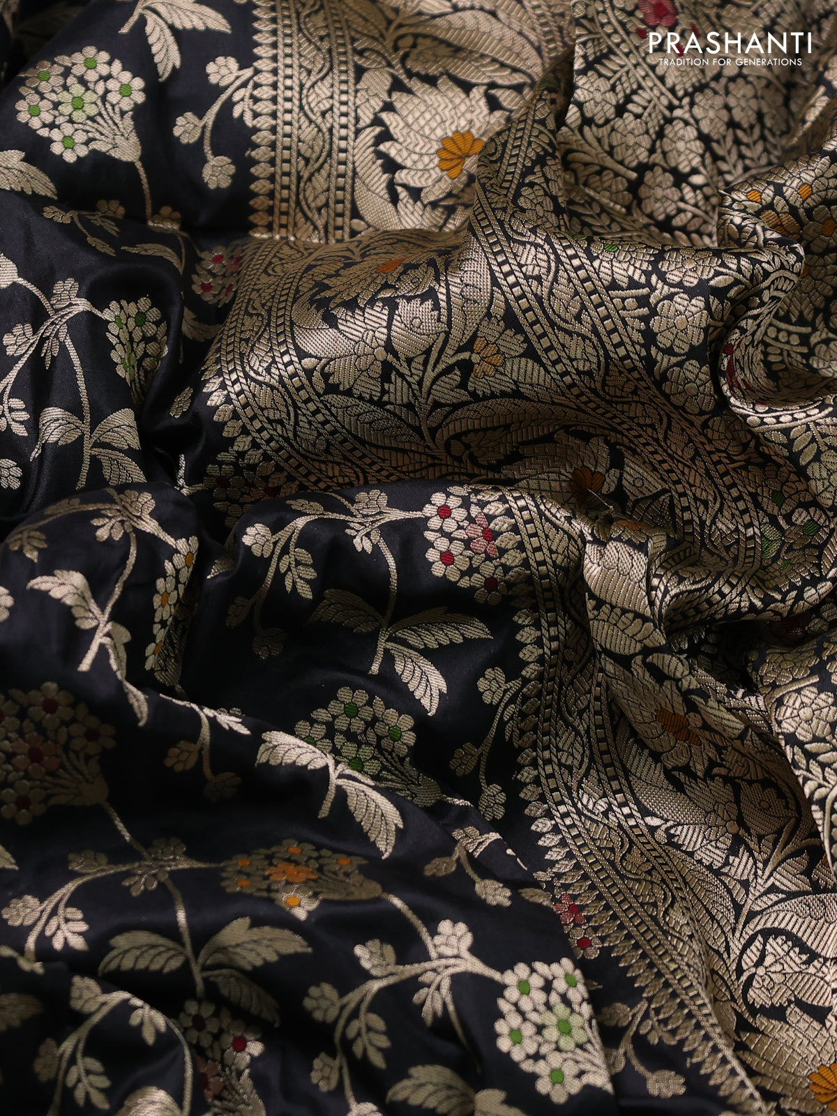 Banarasi uppada silk saree black with allover zari woven brocade weaves and zari woven border