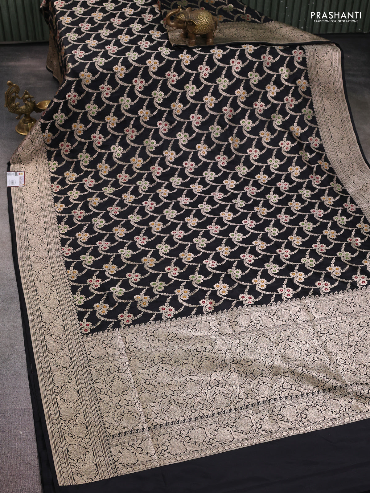 Banarasi uppada silk saree black with allover zari woven brocade weaves and zari woven border