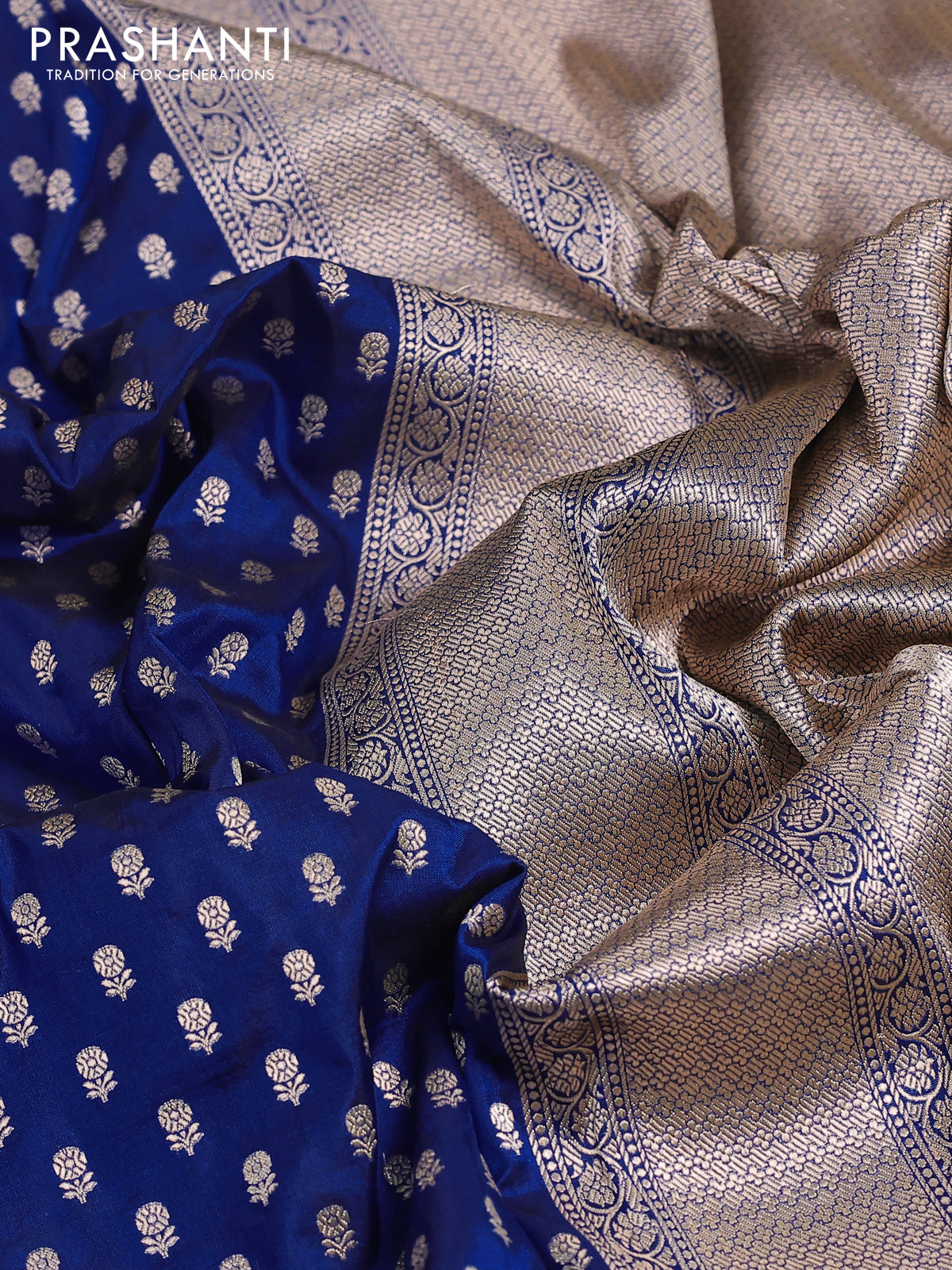 Banarasi uppada silk saree blue with allover zari woven buttas and zari woven border