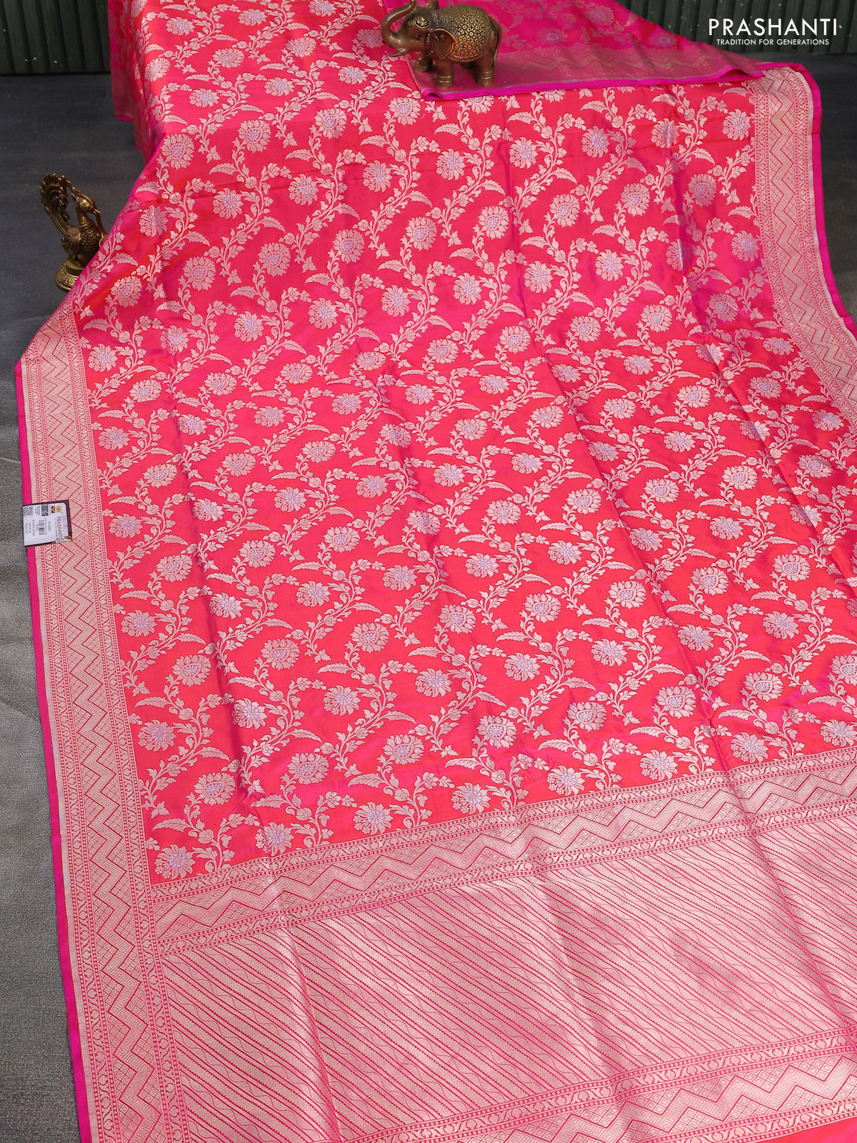 Banarasi uppada silk saree candy pink with allover zari woven floral brocade weaves and zari woven border