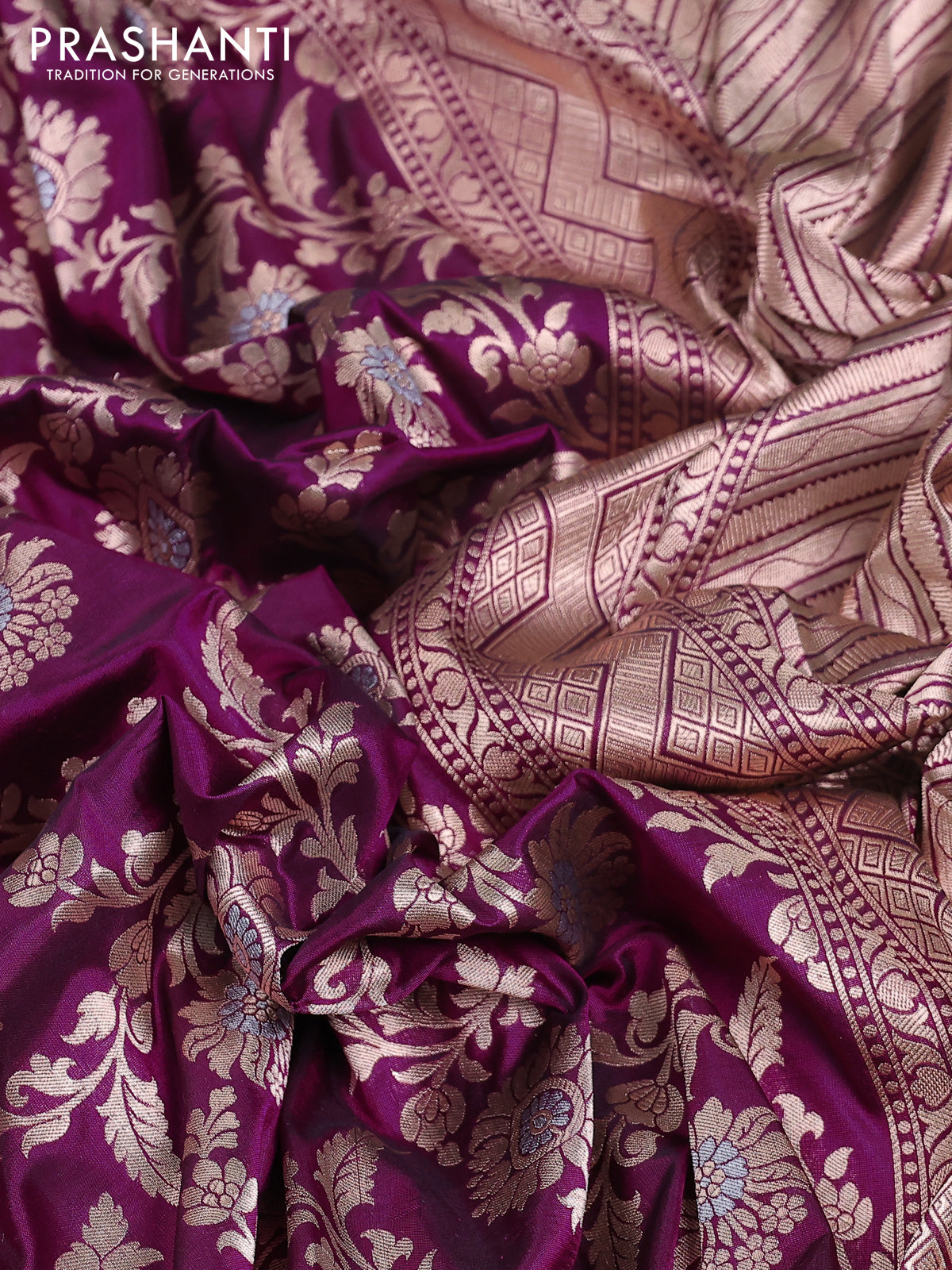 Banarasi uppada silk saree dark magenta pink with allover zari woven brocade weaves and zari woven border