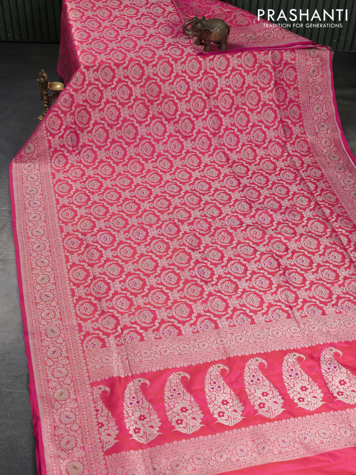 Banarasi uppada silk saree dual shade of pinkish orange with allover zari woven brocade weaves and zari woven border