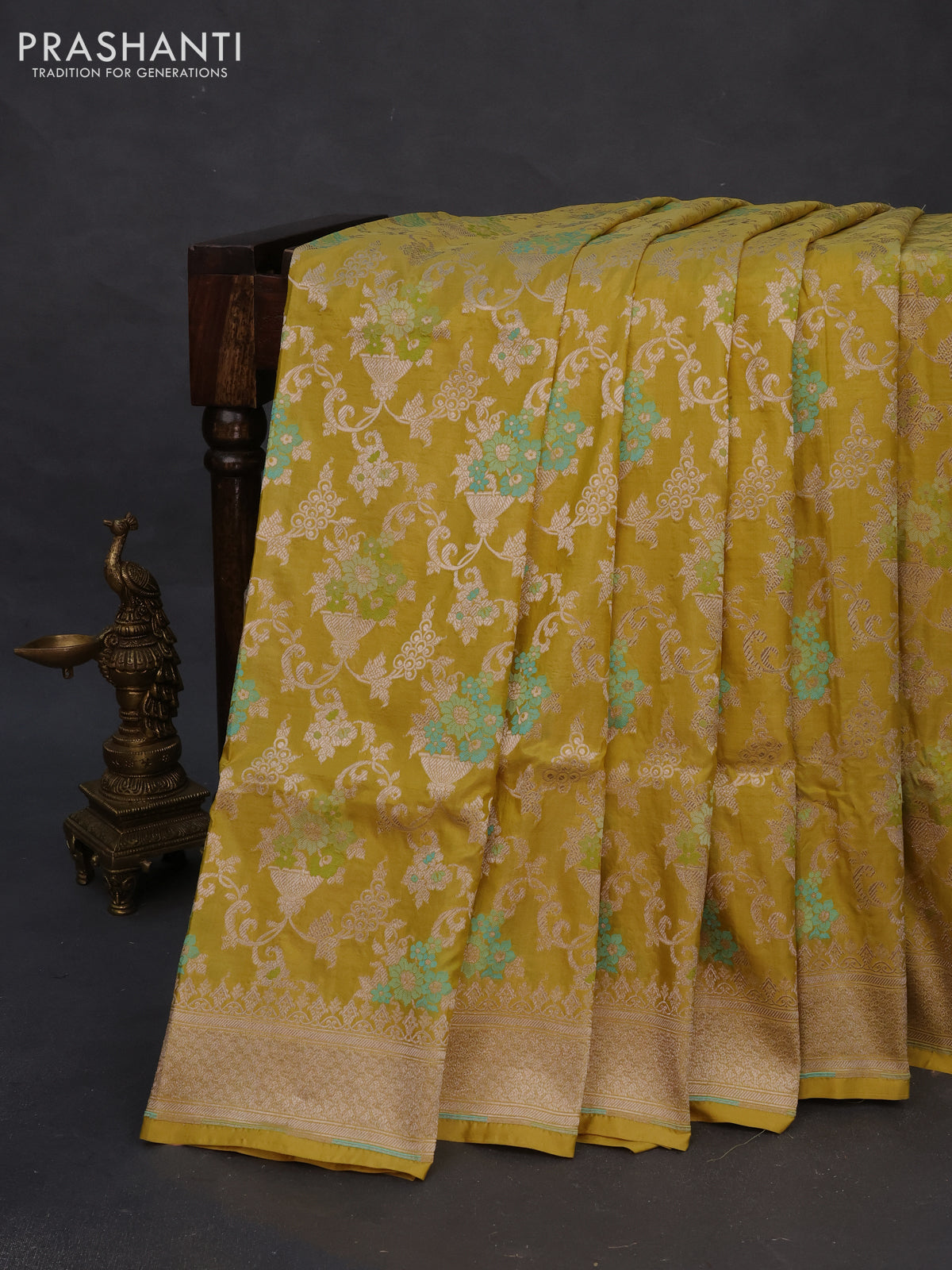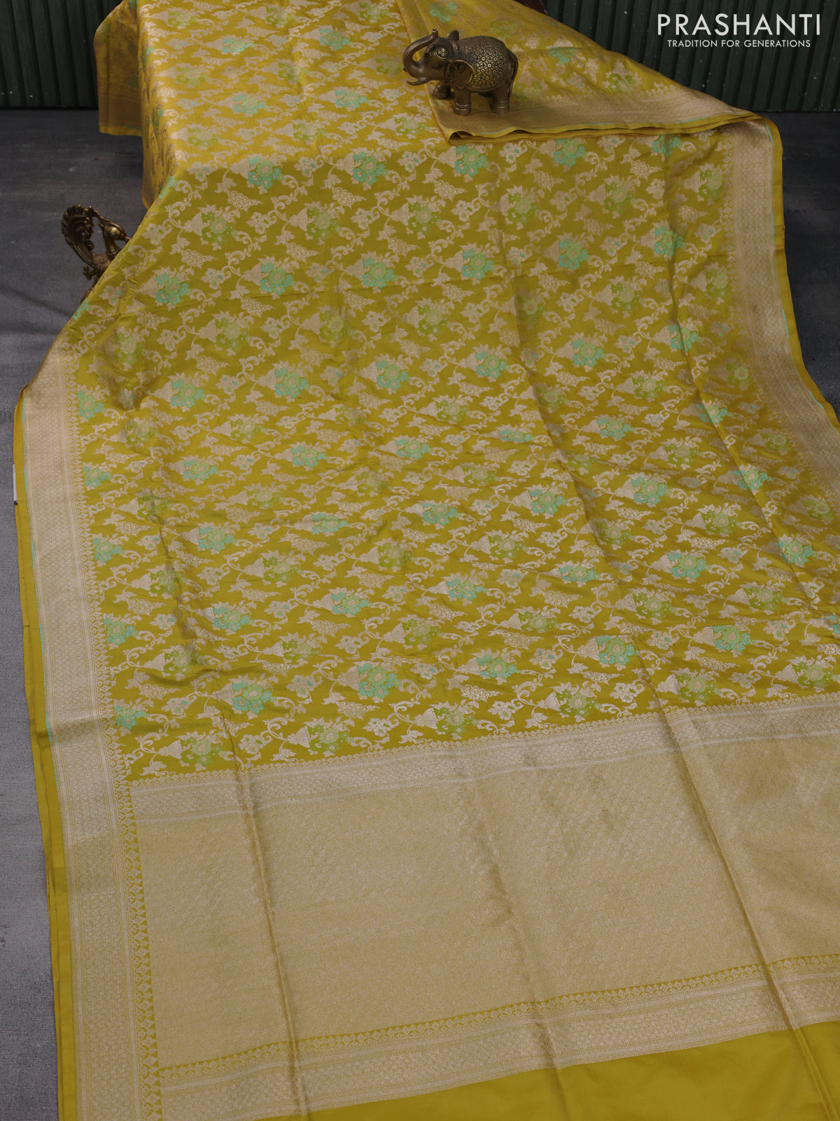 Banarasi uppada silk saree lime yellow with allover zari woven brocade weaves and zari woven border
