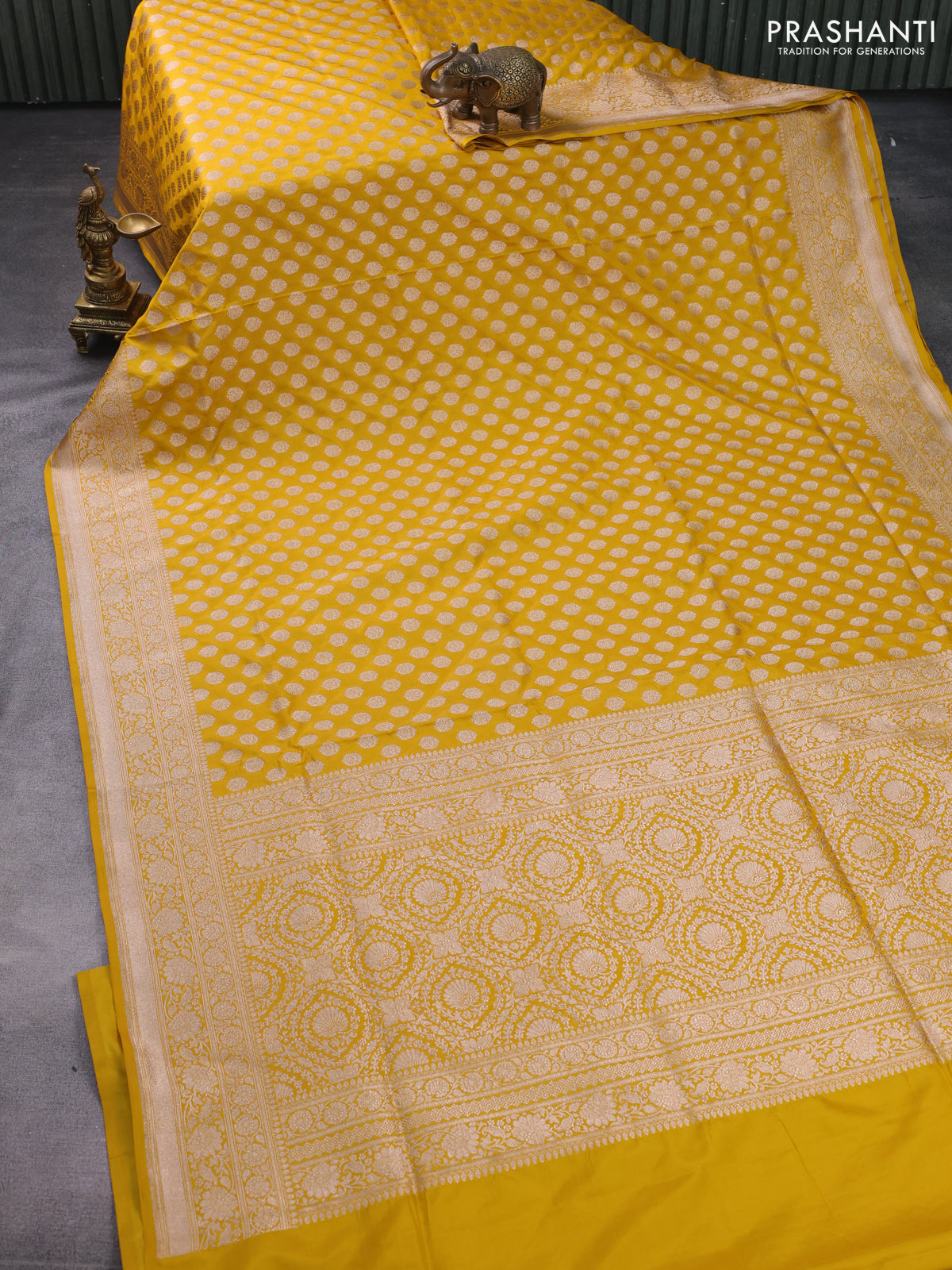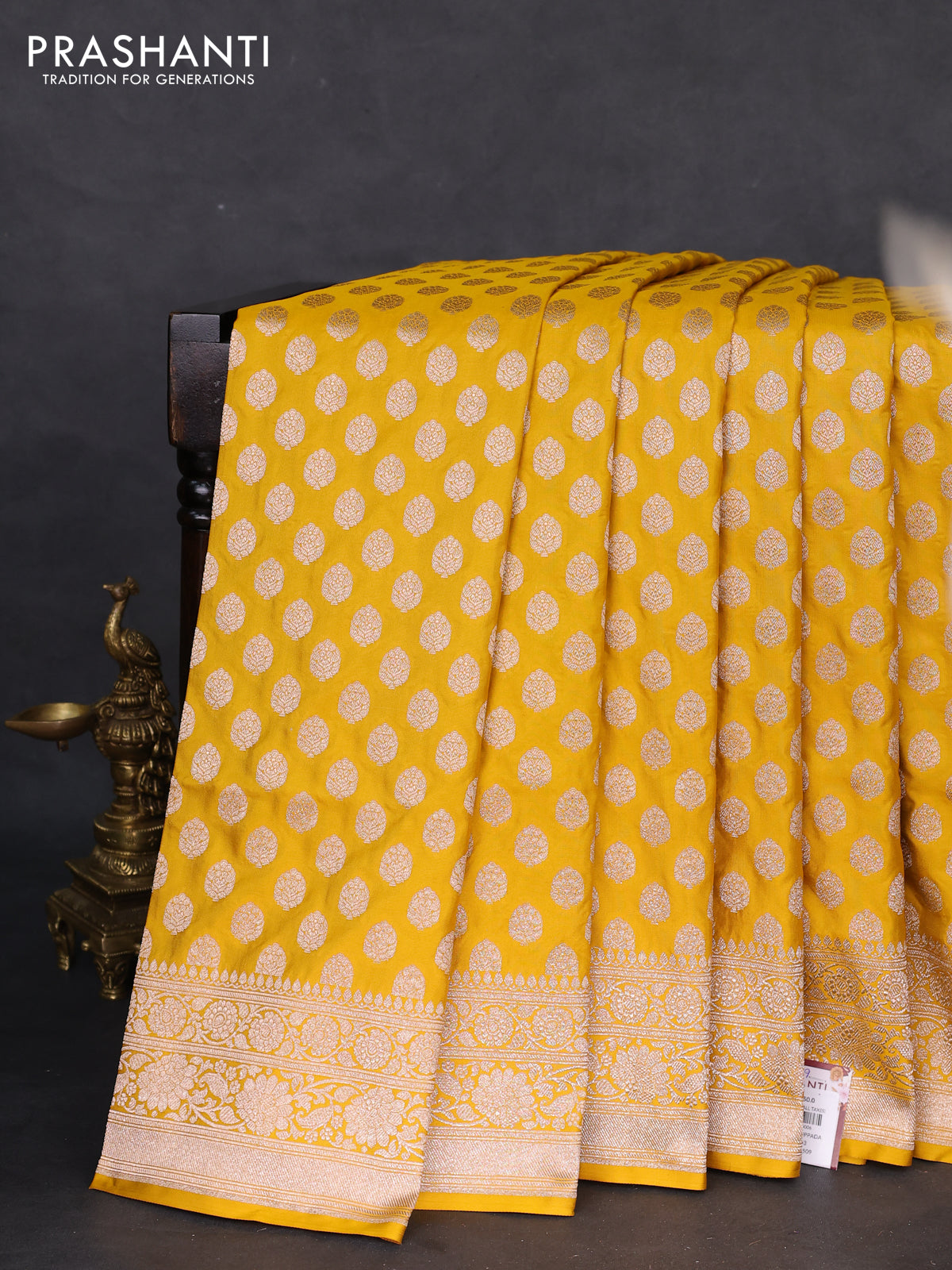 Banarasi uppada silk saree mustard yellow with allover zari woven buttas and zari woven border