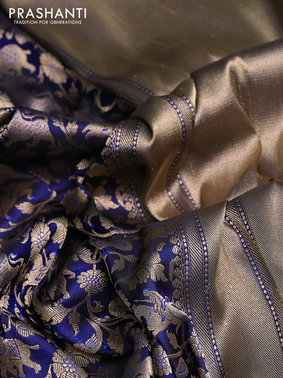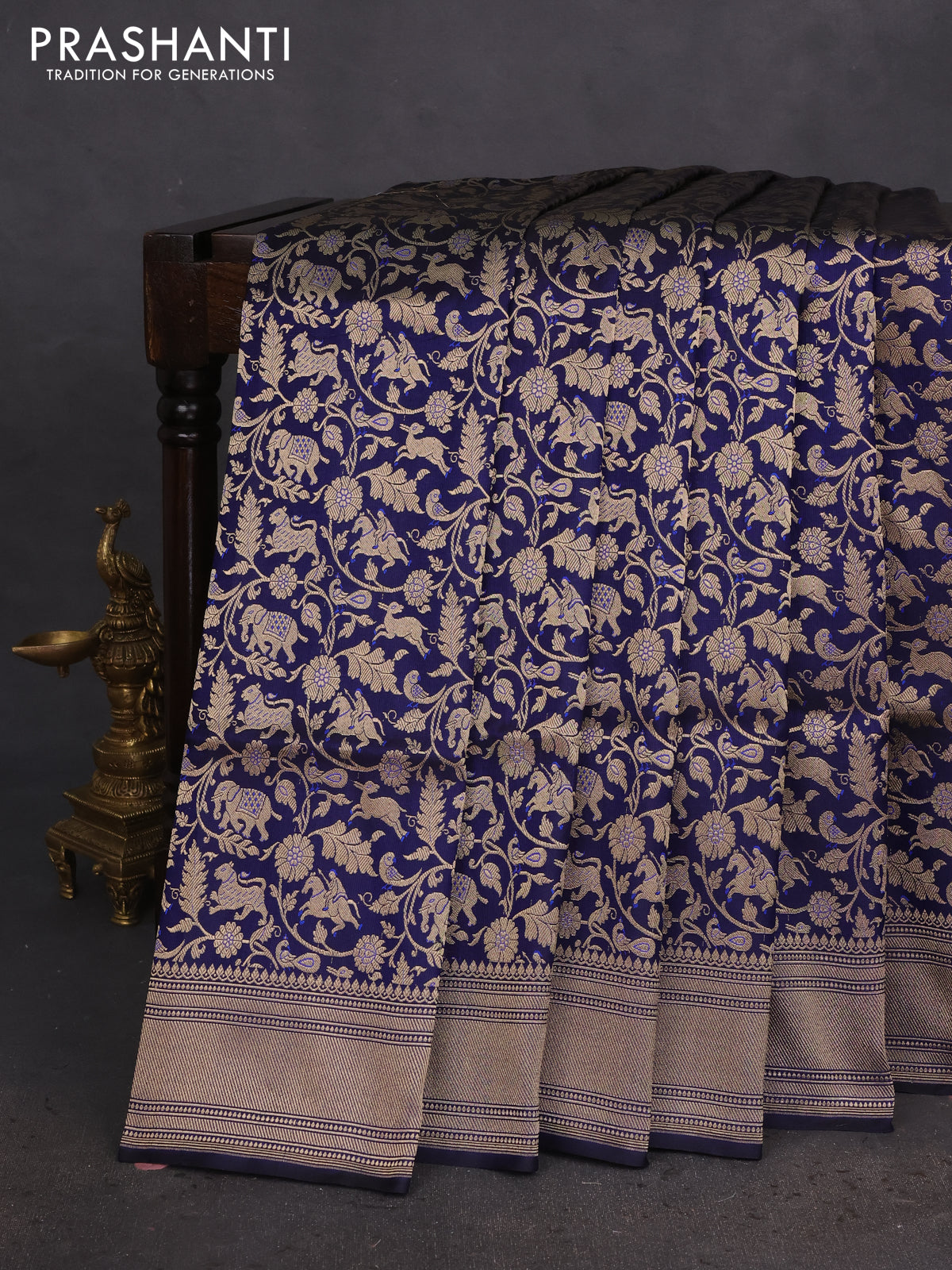 Banarasi uppada silk saree navy blue with allover zari woven vanasigaram weaves and zari woven border