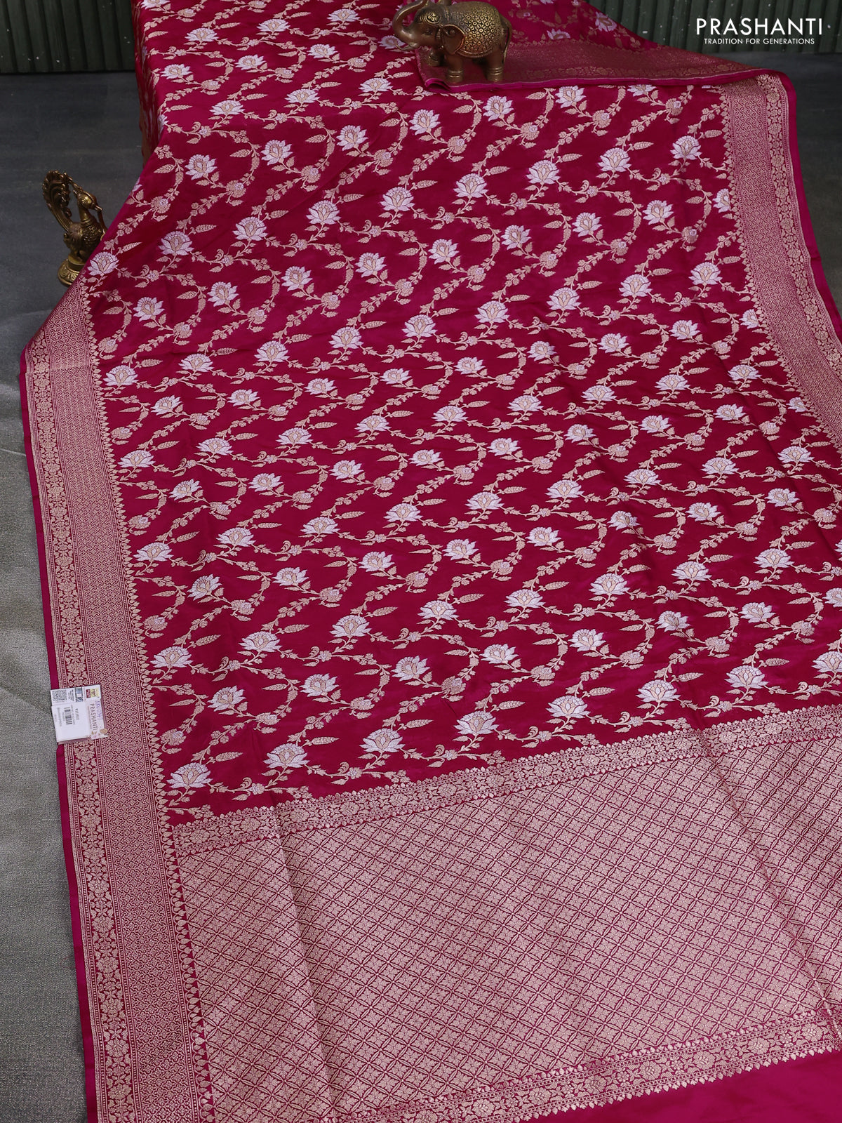 Banarasi uppada silk saree pink with allover silver & gold zari woven floral brocade weaves and zari woven border