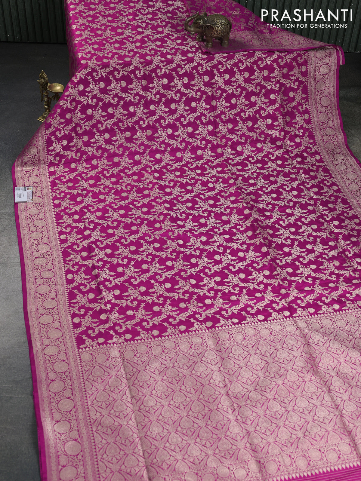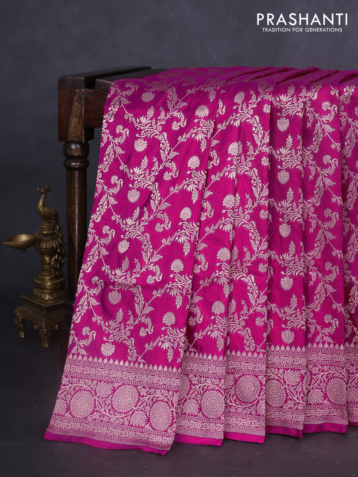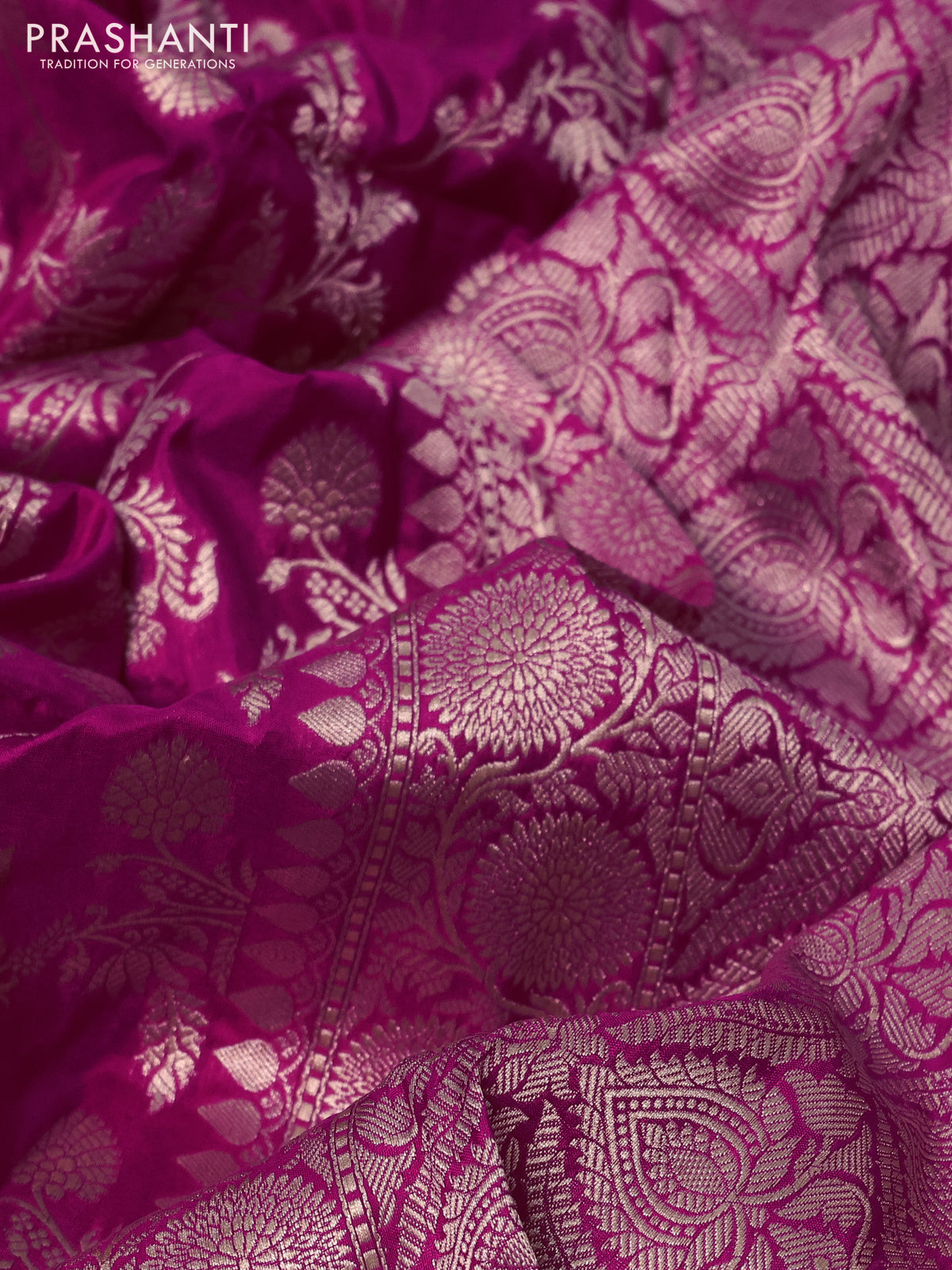 Banarasi Uppada silk sarees blend the finesse of Banarasi artistry with the lightness of Uppada silk, featuring delicate zari motifs and graceful traditional patterns, Lightweight yet exquisitely woven, Silk Mark certified and thoughtfully curated by Prashanti.