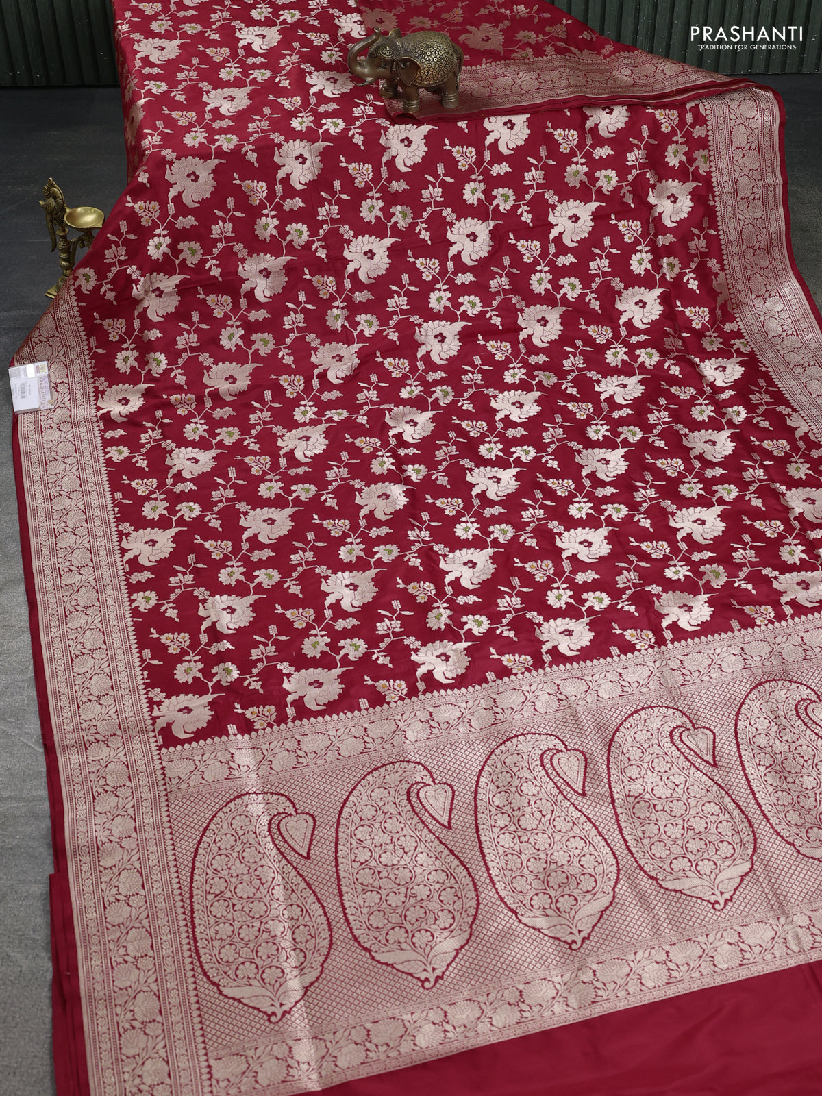 Banarasi uppada silk saree red with allover zari woven brocade weaves and zari woven border