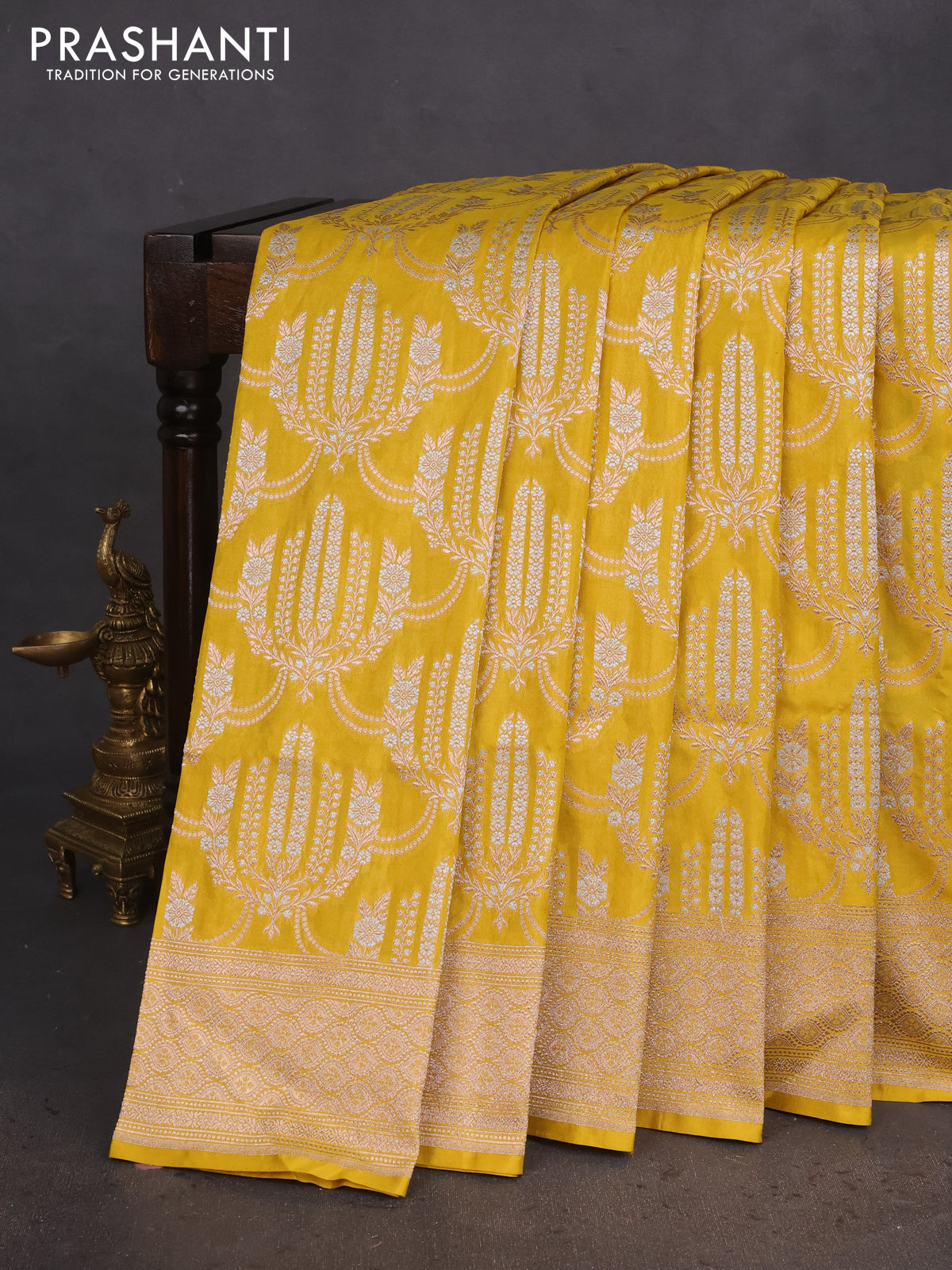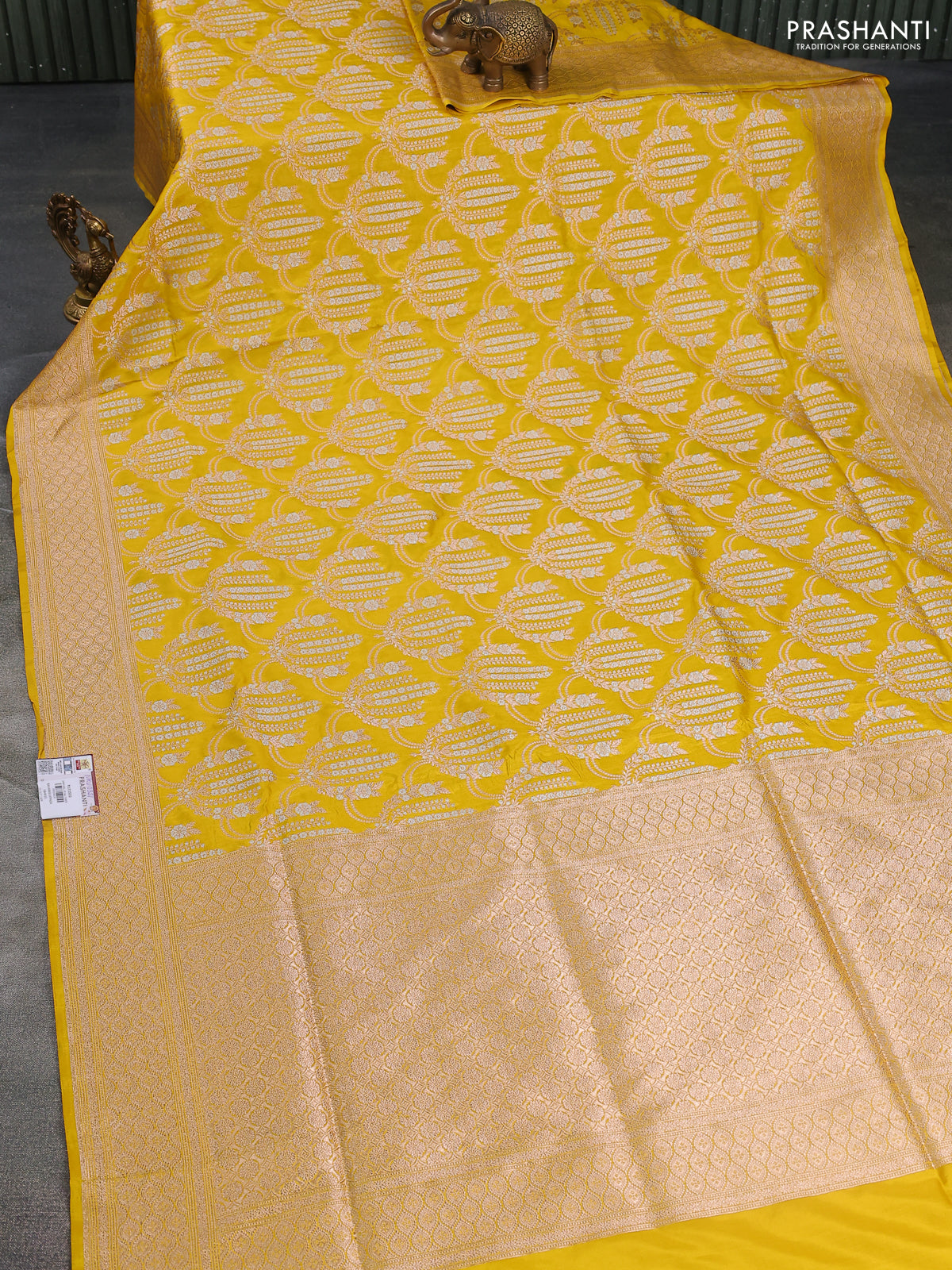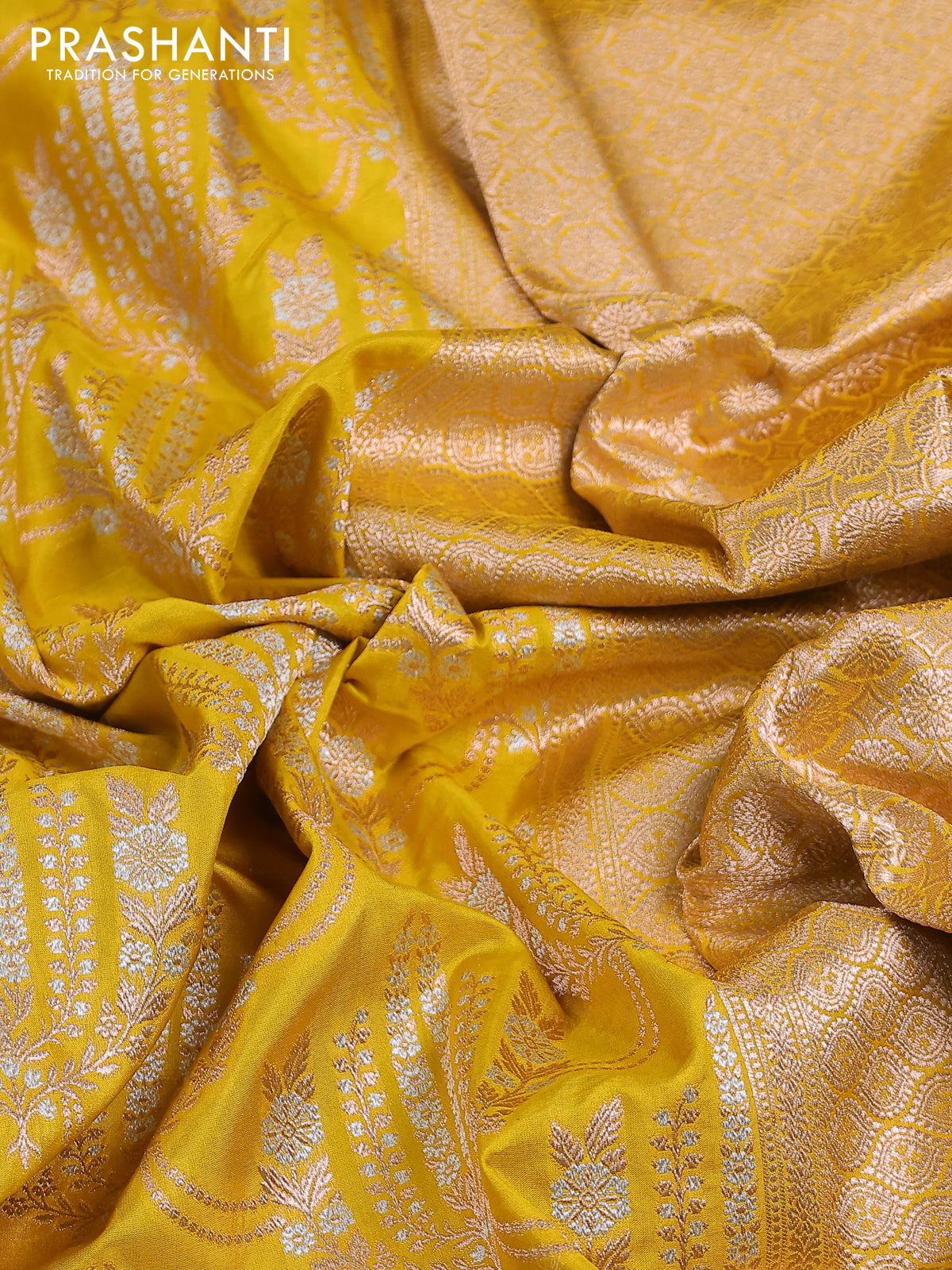 Banarasi uppada silk saree yellow with allover silver & gold zari woven brocade weaves and zari woven border