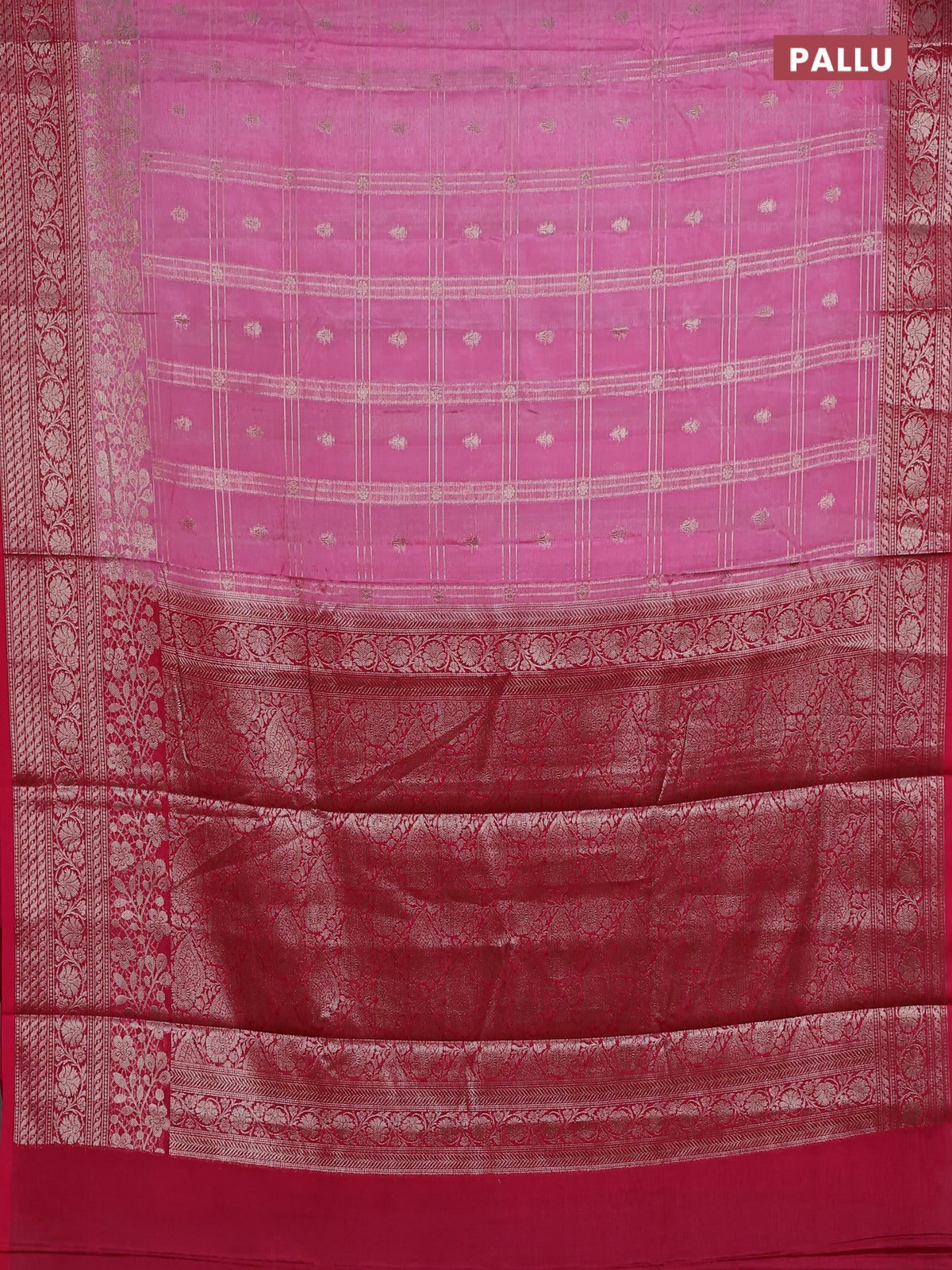Banarasi warm silk saree light pink and pink with allover checked pattern & buttas and woven border