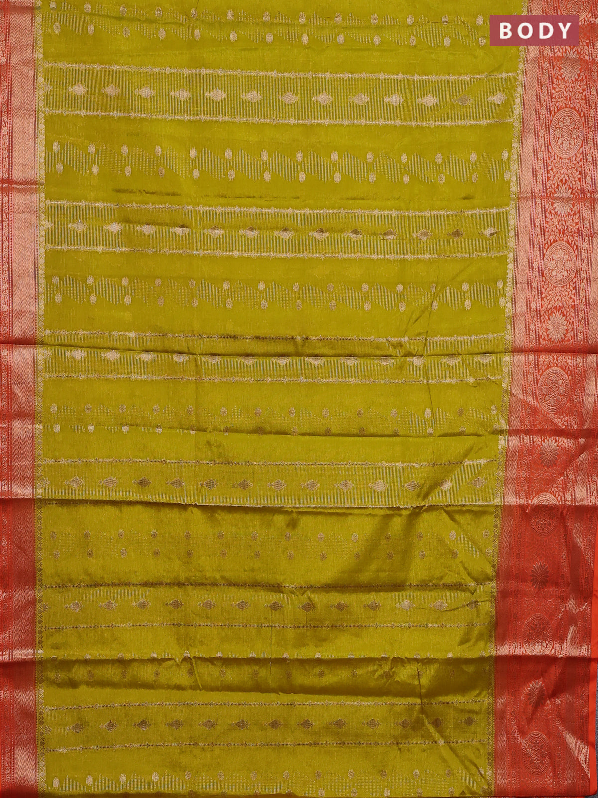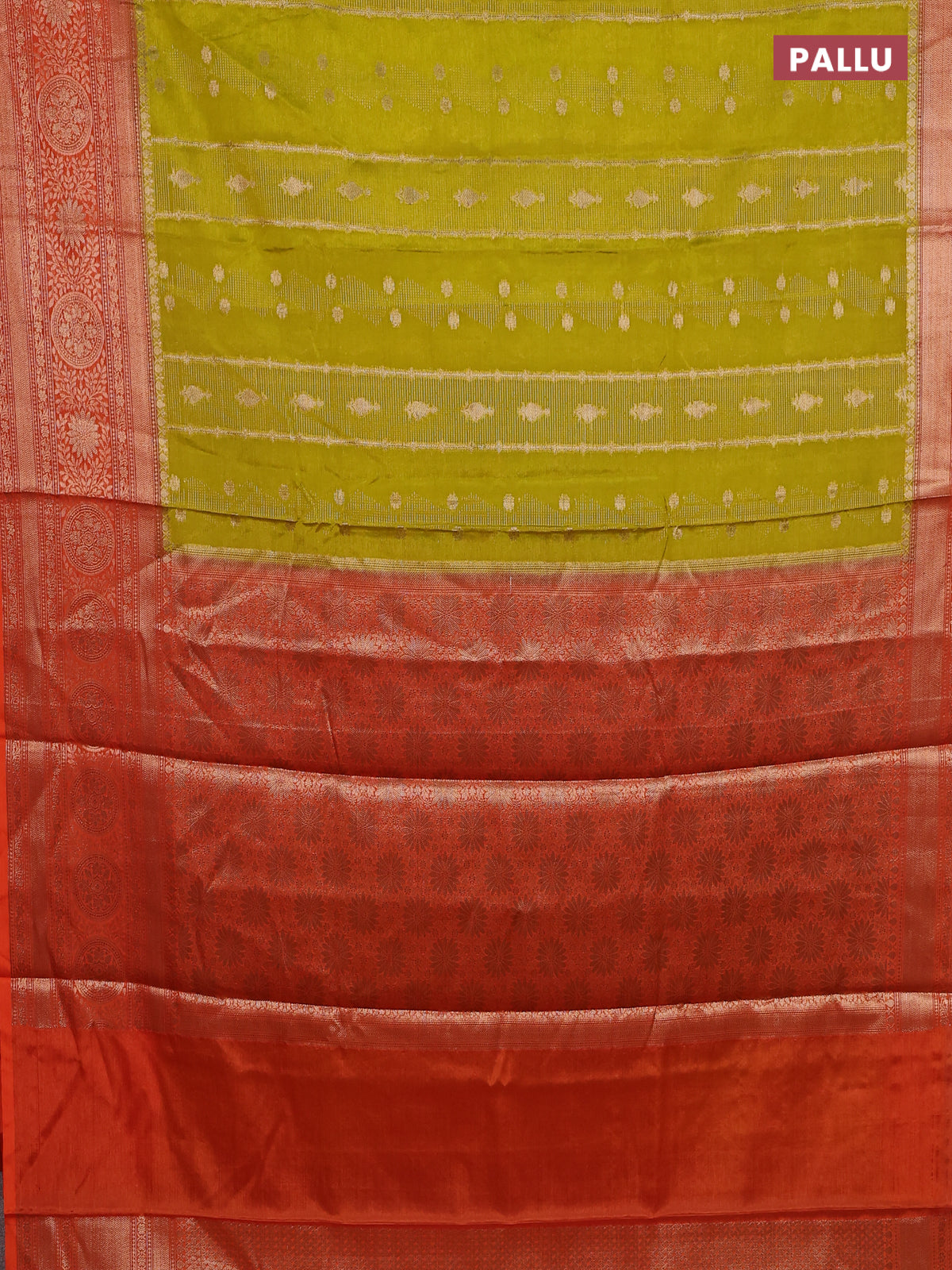 Banarasi warm silk saree lime yellow and orange with allover zari weaves & buttas and woven border